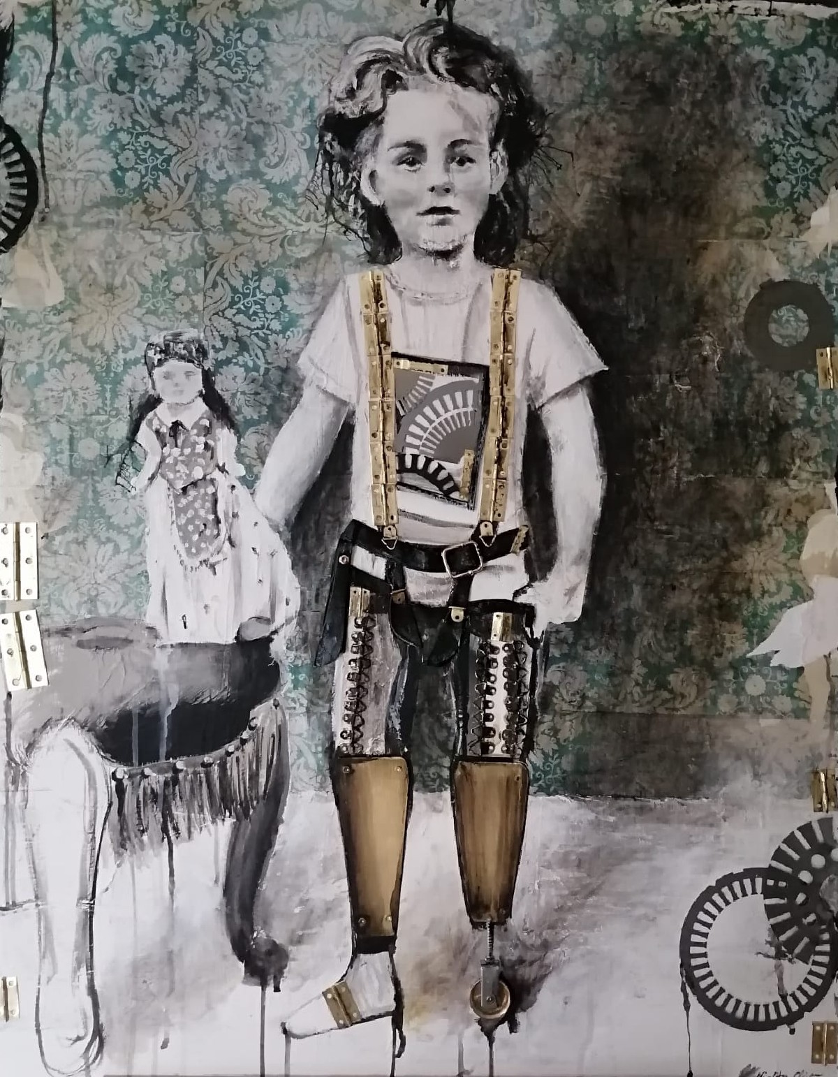Nelle opere di Chiara Napolitano, nata a Carpi nel 1986, è centrale il tema della memoria. Fotografie vintage, piccoli oggetti d'antiquariato e carte da parati diventano, infatti, il perno di ricordi condivisi, che filtrano attraverso la stratificazione delle paste e la sovrapposizione dei ritagli. Dopo l'esordio nel 2014, con le prime copie d'autore e le esperienze in ambito pop, l'artista ha trovato la sua forma d'espressione nel ritratto, ottenuto attraverso la contaminazione di collage e pittura. Per la mostra Evolutions, affronta il topos letterario dell'uomo-macchina attraverso il recupero di una fotografia d'epoca riletta in chiave cyberpunk (Fotoricordo, 2020). Macchina, dunque, come congegno, capace di correggere gli errori di funzionamento della macchina-corpo, ma allo stesso tempo allusione ad un futuro "tecnologico" che, come nei migliori film di fantascienza, alimenta dubbi e paure.