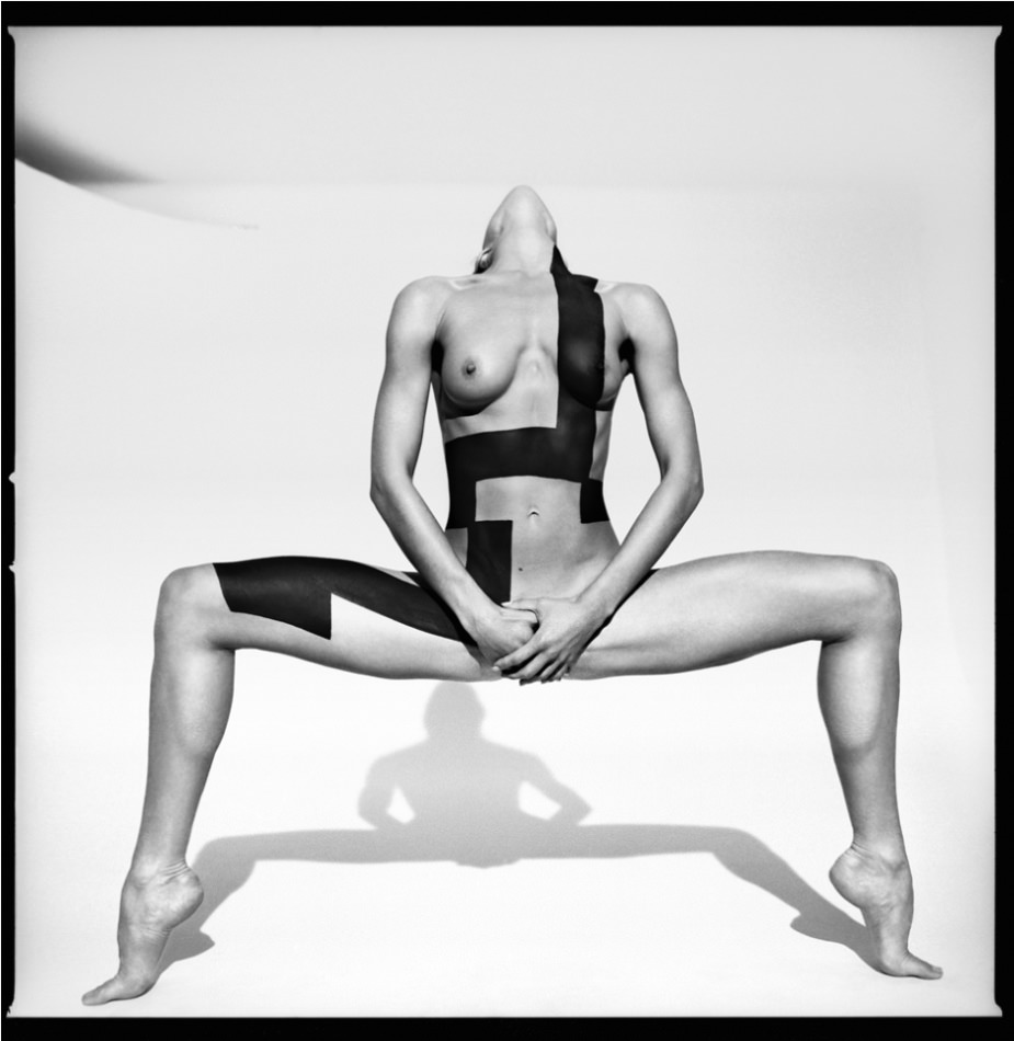 Ewa-Mari Johansson, il cui lavoro si divide tra la fotografia d’arte e quella di moda, porta in questa mostra un’interpretazione tanto originale quanto raffinata del nudo femminile, frutto della collaborazione con il pittore, suo amico e conterraneo, Anders Örnberg. I corpi delle modelle ritratte sono infatti dipinti da questo artista con i motivi di campiture geometriche nere caratteristici della sua opera. La Johansson combina queste forme con quelle del corpo e delle ombre, e plasma il risultato nelle pose spesso ardue, che fa assumere alle ragazze - atlete e danzatrici - fissandolo in un nitido, elegante bianco e nero. Ponendo sempre la massima attenzione nell’escludere dalla scena i lineamenti del volto, che vi porterebbero un peso destabilizzante, la Johansson tramuta così i suoi nudi, dei quali riesce comunque a trasmettere tutta la femminilità, in magnifiche composizioni astratte dove ogni elemento è chiamato alla determinazione dell’equilibrio perfetto: dalle diverse parti del corpo, ai motivi dipinti, ai rapporti di luce e contrasto, persino al margine nero del fotogramma, che, lungi dal costituire un vezzo estetizzante, svolge un’interazione delicatissima con l’immagine e ne diviene, in assenza di significativi aspetti di discontinuità nello sfondo, indispensabile termine di paragone.