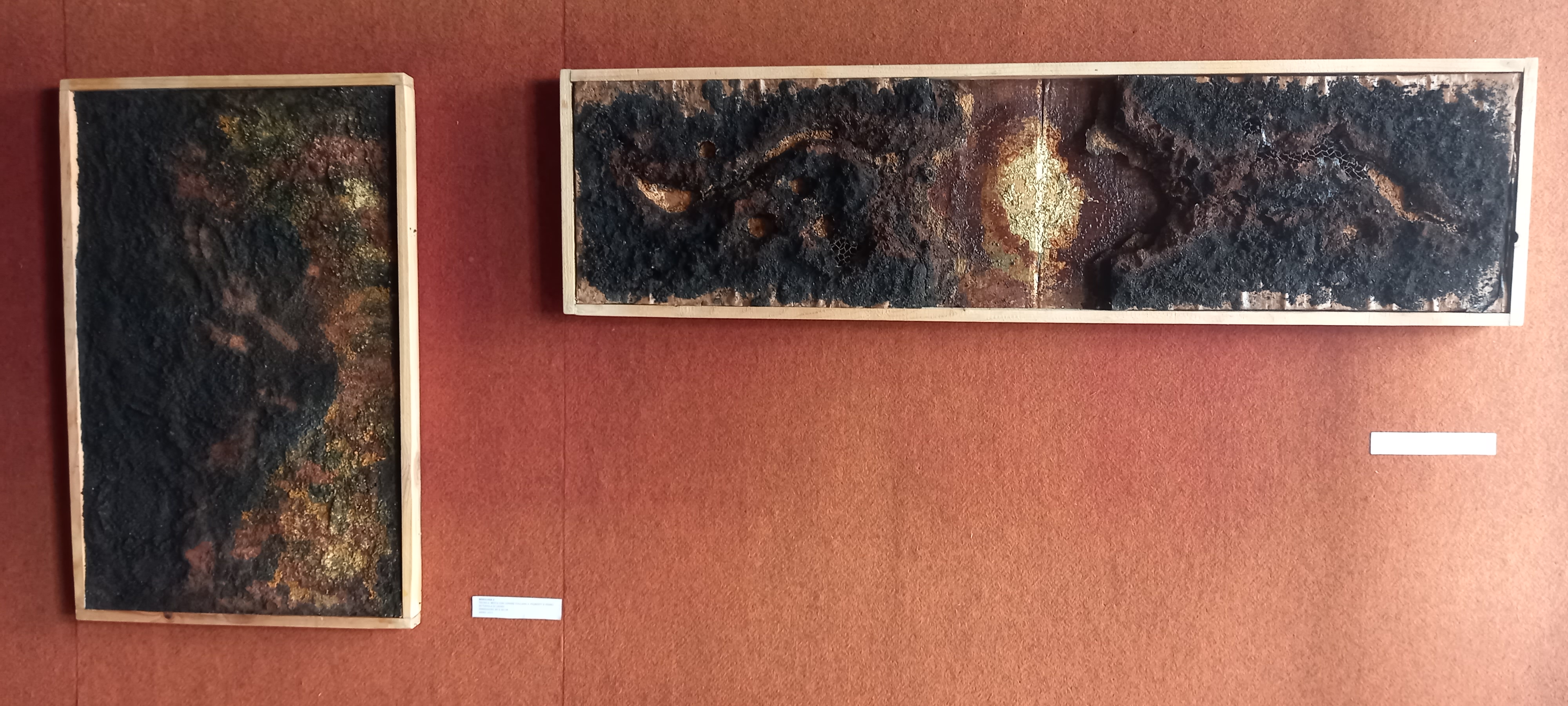 Le opere di Agata Sand, spesso realizzate con sabbia vulcanica dell’Etna, pigmenti naturali, cartone da imballaggio e oggetti di riciclo, invitano lo spettatore a una connessione intima con il “profondo” da cui prendono forma.