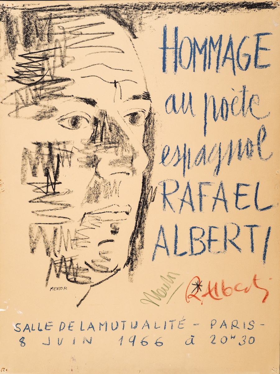 Rafael Alberti, uno dei più importanti poeti della Generazione del 27, era in esilio da quasi tre decenni quando a Parigi gli fu dedicato questo atto, ricevendo in dono una raccolta di disegni realizzati un centinaio di artisti. Organizzato dall'Associazione Culturale Franco-Spagnola, di cui Jean Cassou era presidente, l'omaggio del 1966 comprendeva l'intervento dello ispanista francese Marcel Bataillon, del romanziere guatemalteco Miguel Ángel Asturias (Premio Nobel per la Letteratura), del drammaturgo spagnolo Alfonso Sastre, del poeta Vicente García Cervera, del saggista e critico d’arte Max-Pol Fouchet, dei poeti francesi Jean Marcenac e Max-Pol Fouchet. A Francisco Olmos fu dato il compito di leggere un’interminabile lista di messaggi, fra cui quelli del poeta e Premio Nobel Vicente Aleixandre, del filosofo Julián Marías, di Gerardo Diego e le adesioni di Pablo Picasso, Juan Goytisolo e Miguel Delibes, tra i tanti.