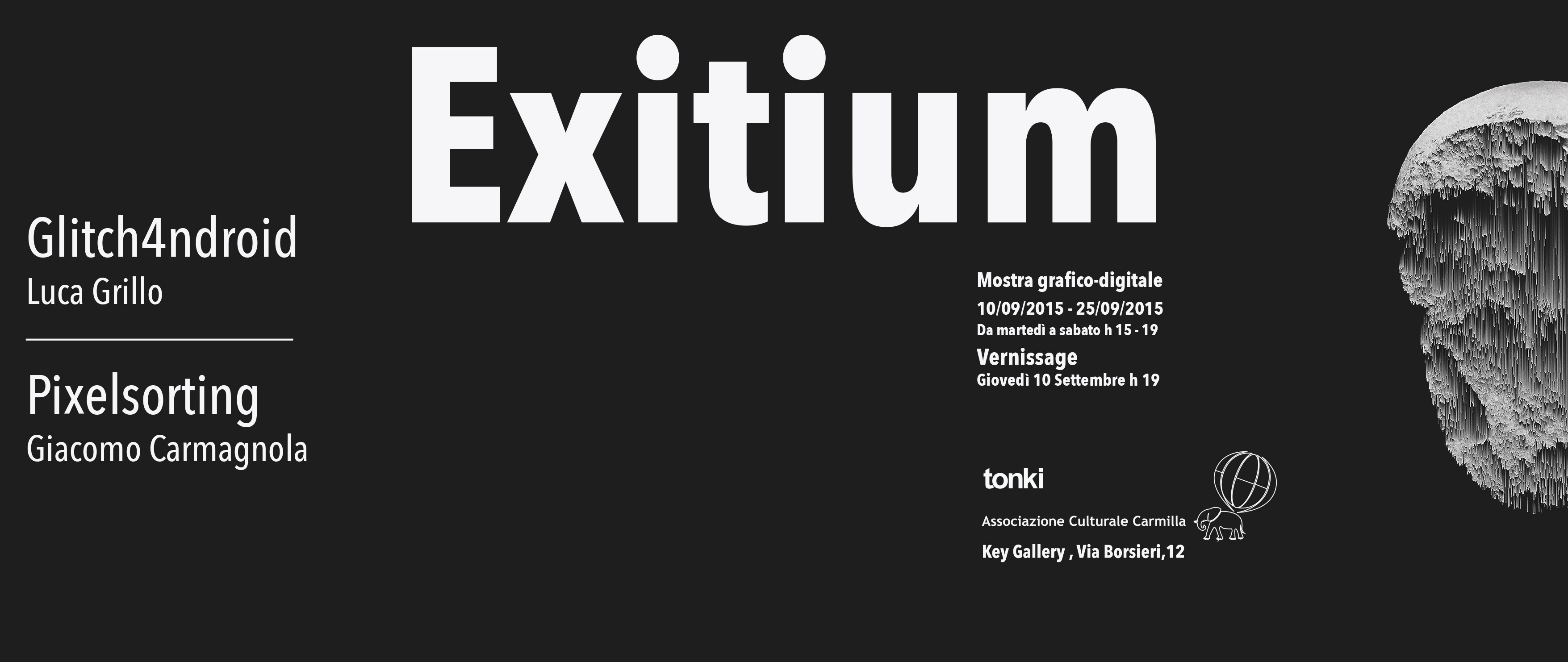 Mostra grafico-digitale a cura di Associazione Carmilla e Cristina Caloni. Le immagini di Exitium (dal latino distruzione, rovina) sono il punto di incontro tra tecnologia di massa e arte. Tutto tramite l’applicazione Glitch per Android..