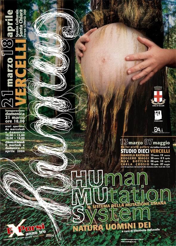 Dopo ExPorsi Anno Uno W.a.r.r.r.r.r.r.r., progettato sui temi della ricerca, del riciclo e della riconsacrazione del’arte, e dopo H2O, dedicata al tema della Sete universale, Humus chiede ai giovani artisti di affrontare il difficile tema della mutazione ( Human Mutation System) in ogni suo aspetto e di utilizzare, come Oggetto simbolico, un acero vivo, invasato e già di almeno 2mt.di altezza, che viene ‘integrato’ nelle opere esposte e che diviene, a fine evento, parte intergrante del Bosco di ExPorsi , il primo Bosco dell’Arte a Vercelli.