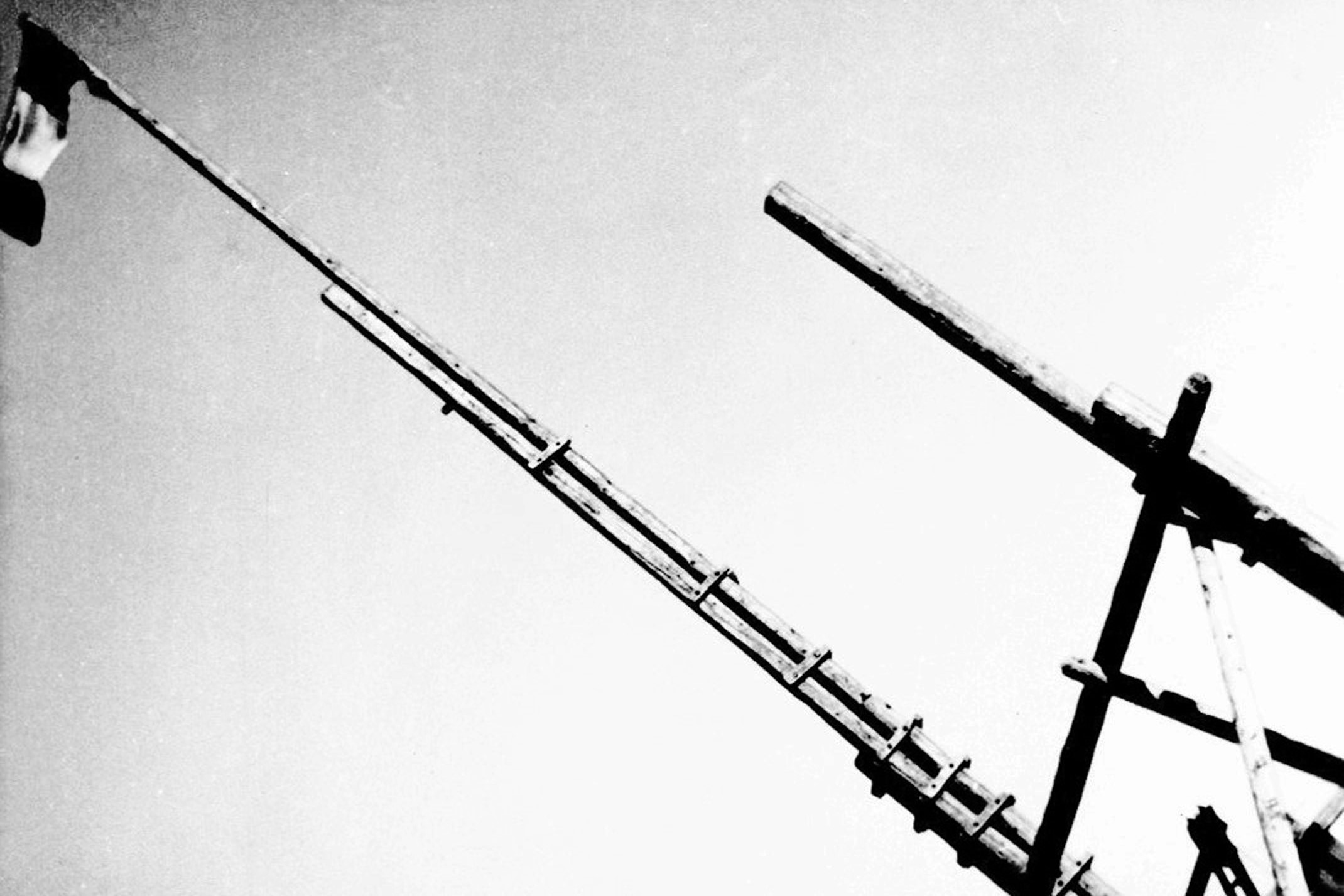 Ugualmente extra moenia è il campo d’indagine su cui si concentra il gruppo di architetti per l’allestimento. Ponendosi in dialettica con le possenti mura aureliane che si stagliano di fronte alla vetrina, limite di un’intra moenia inteso come spazio della cristallizzazione, l’installazione si colloca, con un gesto netto ed indipendente, nello spazio al di fuori, il luogo delle possibilità, del cambiamento e della contraddizione. Il dispositivo utilizzato è un muro, una diagonale di 675 mattoni pieni che determina l’uso dello spazio, lo fraziona e lo mette in discussione uscendo dai limiti del cubo-vetrina per proiettarsi all’interno dello studio. Il muro è anche inteso come momento costruttivo e insieme al ponteggio ligneo, che fa da perno e fuoco prospettico alla lunga fila di mattoni, astrae la complessità delle fasi costruttive di un oggetto e svela gli elementi che lo compongono nella loro autenticità materica. Questi due momenti, la narrazione storica e quella installativa, dialogano tra loro mediante un linguaggio di assonanze materiche e formali e, seppur frutto di percorsi differenti, riassumono entrambi una ricerca spaziale coerente con il contesto ed esprimono la profonda passione per il lavoro di due diverse generazioni.
