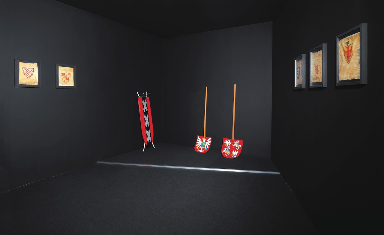 I temi degli stemmi sono spesso motivi scudati con bande a più colori e motivi geometrici, che nella sezione dedicata alle Astrazioni vengono ampliati dalle assonanze con opere di arte contemporanea di artisti che hanno fatto dell’elemento geometrico, della ricerca iconografica e del concetto stesso di parola/immagine la loro poetica come Maurizio Cannavacciuolo, David Tremlett e Beverly Pepper.