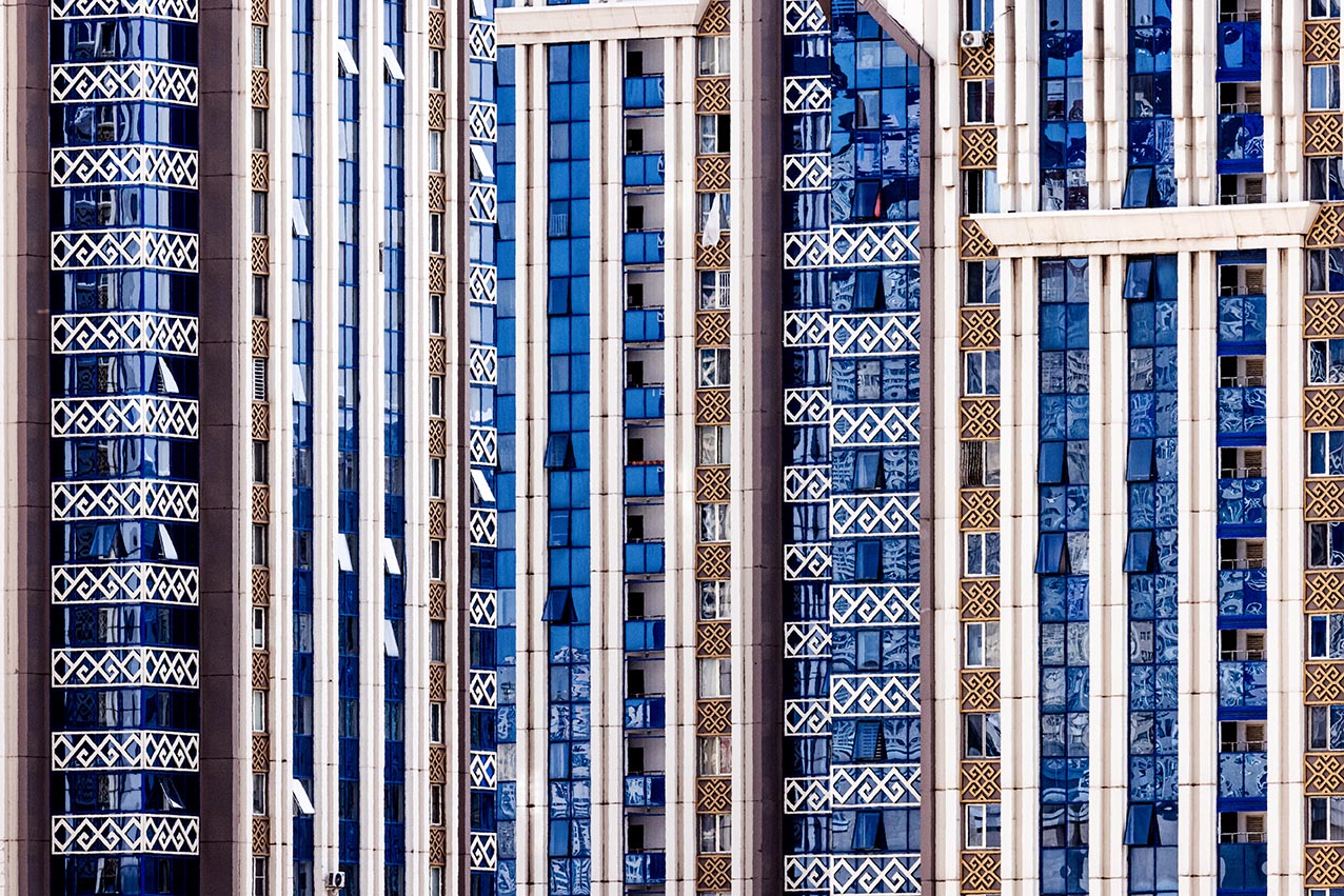La tecnica fotografica adottata da Umberto Stefanelli nelle opere di questa mostra si distingue per la sua capacità di trasformare la realtà architettonica in una composizione pittorica. Attraverso un accurato studio delle linee, dei colori e delle simmetrie, Stefanelli cattura in ogni scatto la struttura ripetitiva delle facciate, riducendole a pattern geometrici che evocano l’astrazione tipica della pittura contemporanea.