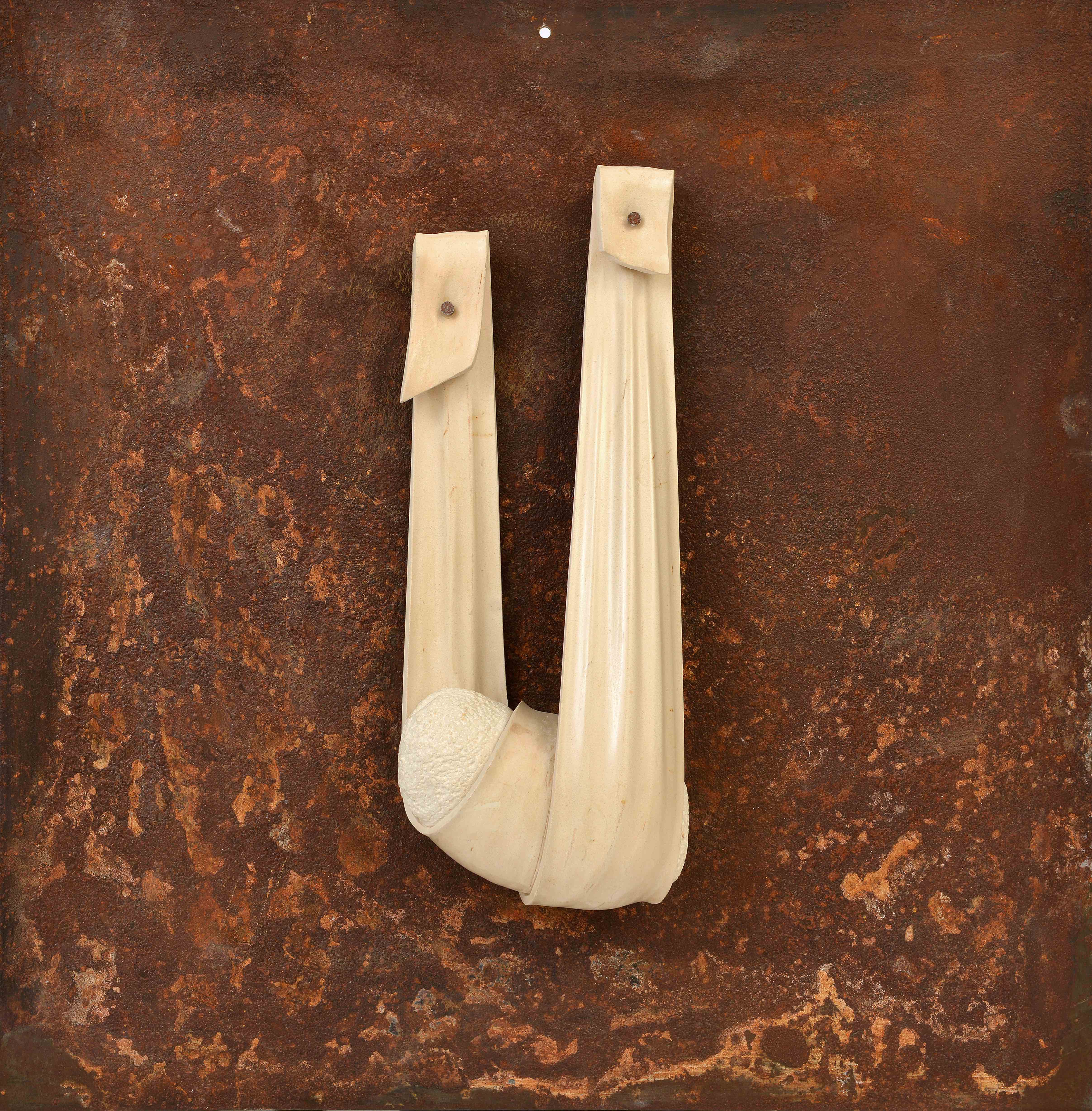 Le opere esposte testimoniano l’evoluzione dell’Artista, che nella produzione recente intuisce la possibilità di conquistare la superficie delle pareti e trasferisce le sculture su uno sfondo di acciaio corten, trasformandole così in “quadri” da appendere.