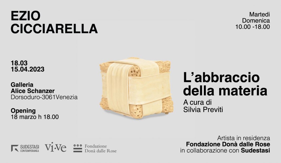 L’evento si inserisce all’interno del progetto di residenza d’artista “Vi-Ve: Ezio Cicciarella da Vittoria a Venezia”, 10 marzo - 10 giugno 2023, ideato dalla Fondazione Donà dalle Rose in collaborazione con Sudestasi Contemporanea.