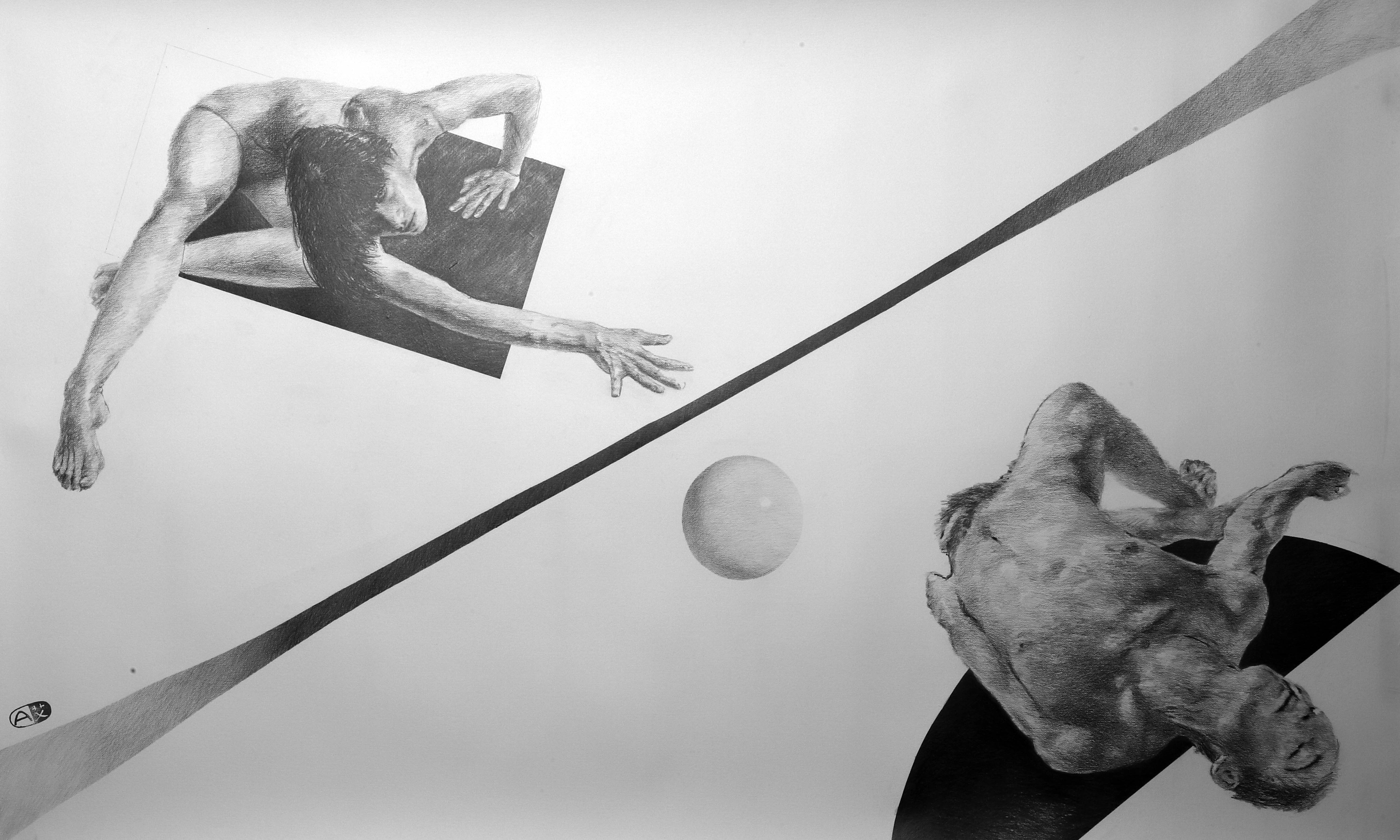 Lo spazio liquido e in qualche modo cosmologico delle pitture precedenti si fa iper terreno. Il tutto o il nulla che riguardano le esistenze umane avvengono dentro confini chiari e circoscritti.