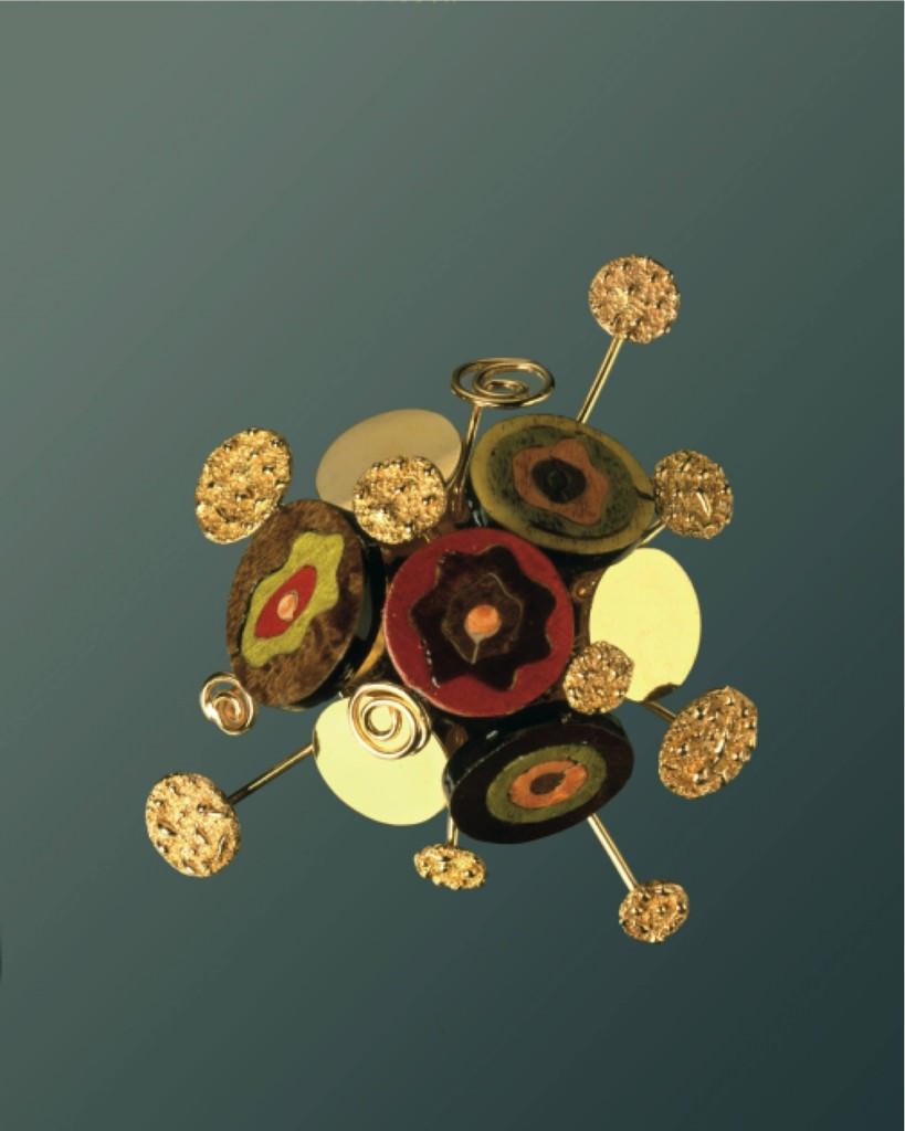 E’, tuttavia, dal secondo filone della sua ricerca, realizzato in ebano, legni pregiati e colorati, che trapelano le contaminazioni con la pittura del ‘900, Klimt, Depero, Chagall e Kandinsky per il colore, e con l’architettura contemporanea per la forma.