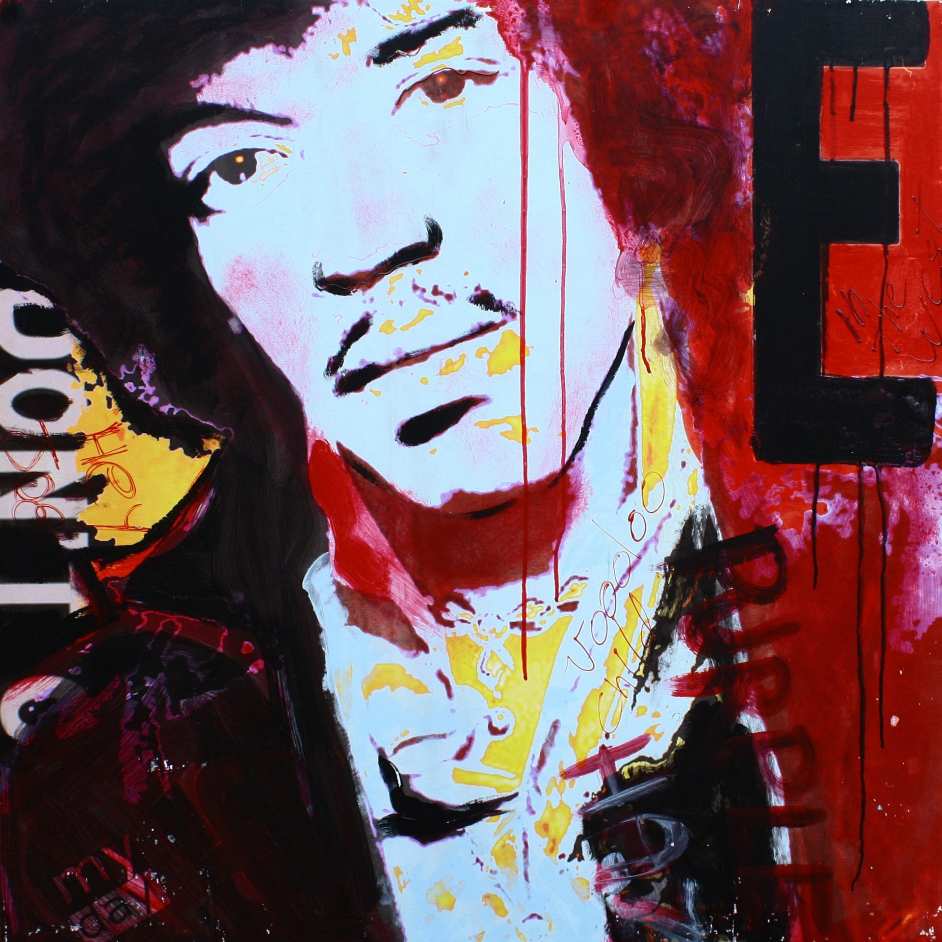 Con Amnesia, Fabio Gismondi ripropone nelle sue opere, con vibrata forza cromatica, da pittore che conosce bene le tecniche moderne della composizione artistica, le icone della nostra cultura.