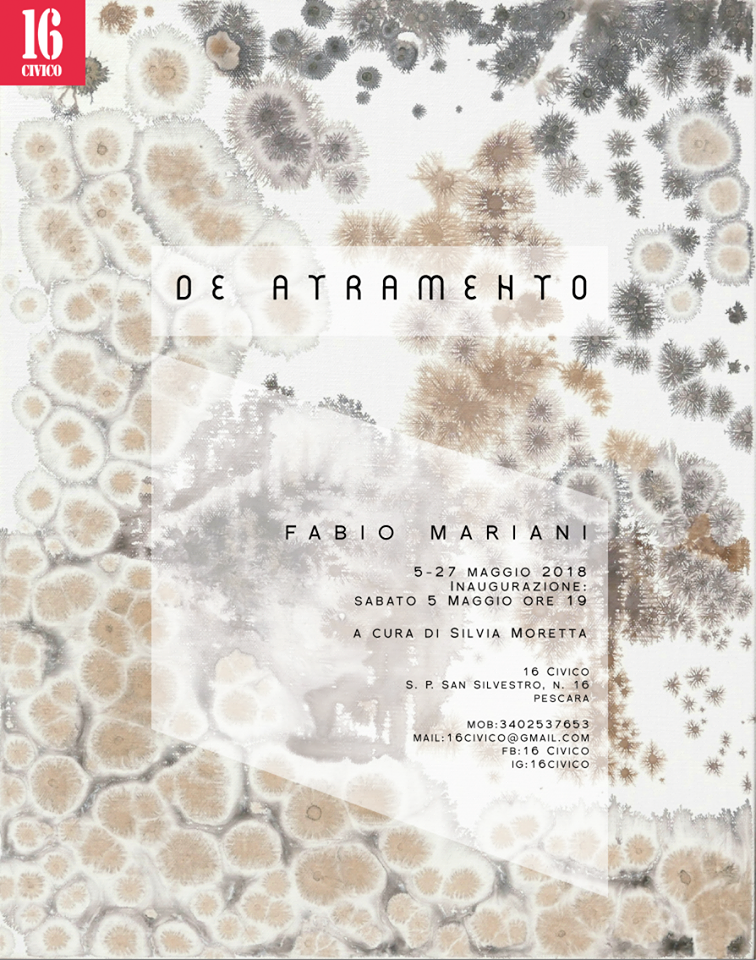 Lo spazio indipendente per l'arte 16 Civico apre le porte, sabato 5 maggio alle ore 19, alla mostra personale di Fabio Mariani, “De Atramento”, (Sull'inchiostro) a cura di Silvia Moretta. Il titolo della