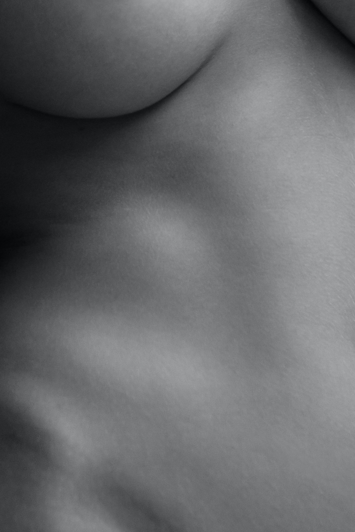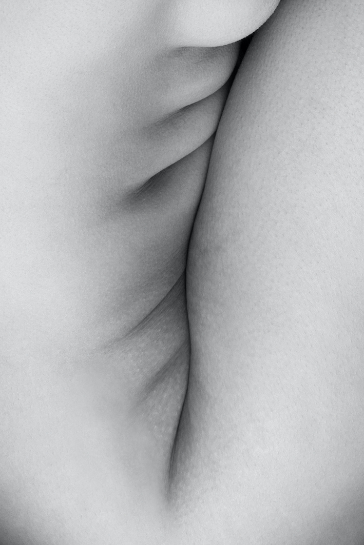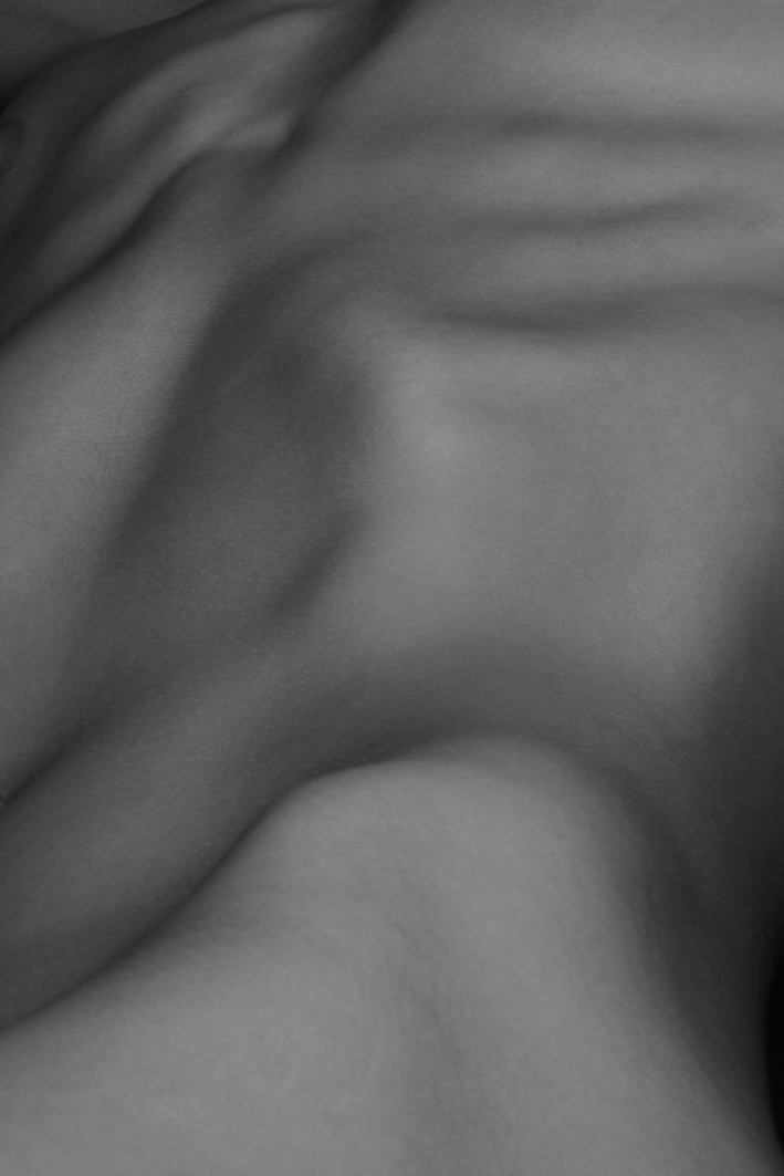“Erogene origini” percorre quindi la strada della ricerca formale, scrutando la superficie del corpo, fino alla sintesi estrema dei piani di visione tanto da ottenerne una proiezione panoramica tipica della fotografia di paesaggio da cui Montalto si differenzia abilmente per i tagli prevalentemente verticali delle immagini; è questa l’orogenesi, la metafora visiva che l’autore usa attraverso lo scandaglio fotografico del territorio del corpo.