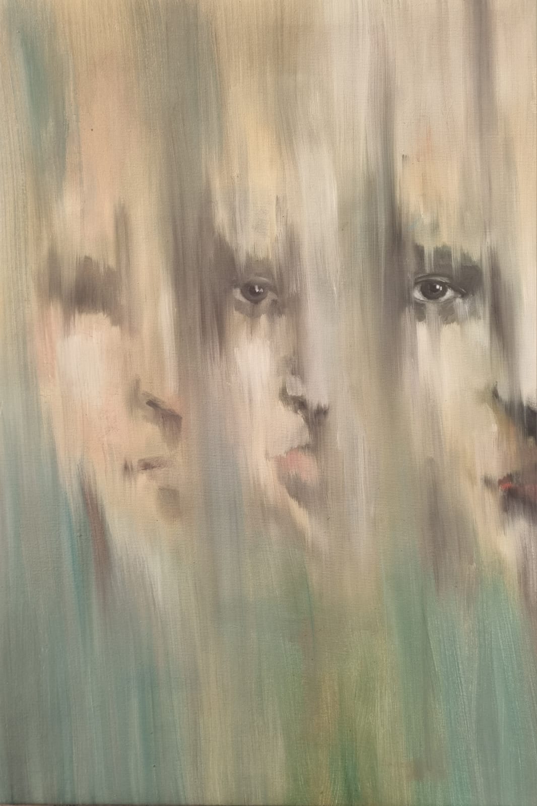 Ma la vulnerabilità non è un difetto, bensì una forza. È il punto di partenza per una ricerca di senso, per una presa di coscienza che ci liberi dall’anonimato e dal conformismo delle convenzioni sociali. L’artista ci invita a riconoscere la bellezza nell’imperfezione, nell’autenticità di chi si misura con le proprie paure, con le proprie angosce e con la realtà della morte, per trovare significato nel confronto con il vuoto. Le pennellate di Palazzone sembrano scolpire la luce e le ombre con attenzione drammatica, evocando un chiaroscuro che richiama la tradizione classica, ma reinterpretato in chiave esistenziale. La sua palette sobria e sfumata, con toni neutri e delicati, amplifica la malinconia delle figure, rendendole universali e intime, evitando qualsiasi decorativismo.