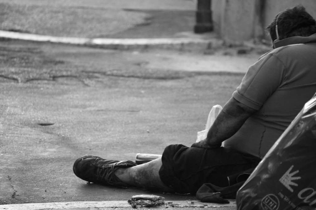 L’argomento centrale delle nuove 44 fotografie, nasce proprio dall’esigenza di dover ispezionare la città, il suo vuoto, l’iniquità e i suoi punti nevralgici di passaggio giornaliero dove però è possibile scorgere l’aspetto forse più perturbante delle metropoli: “i senza dimora”. Il viaggio simbolico che F. Petrelli affronta si viene a compiere nella dimensione urbana contemporanea e ha un incidere dinamico: non più il viaggiare risoluto verso orizzonti nuovi e ignoti, ma, un eloquente quanto malinconico viaggio nelle proprie città per poter scorgere e fissare attraverso l’uso della macchina fotografica, tutto ciò che è stato indifferentemente omesso e calpestato, vite comprese. Mendicanti e barboni quindi come portatoti di quella memoria collettiva e individuale persa, di quel “centro”, di quella coscienza culturale smarrita.