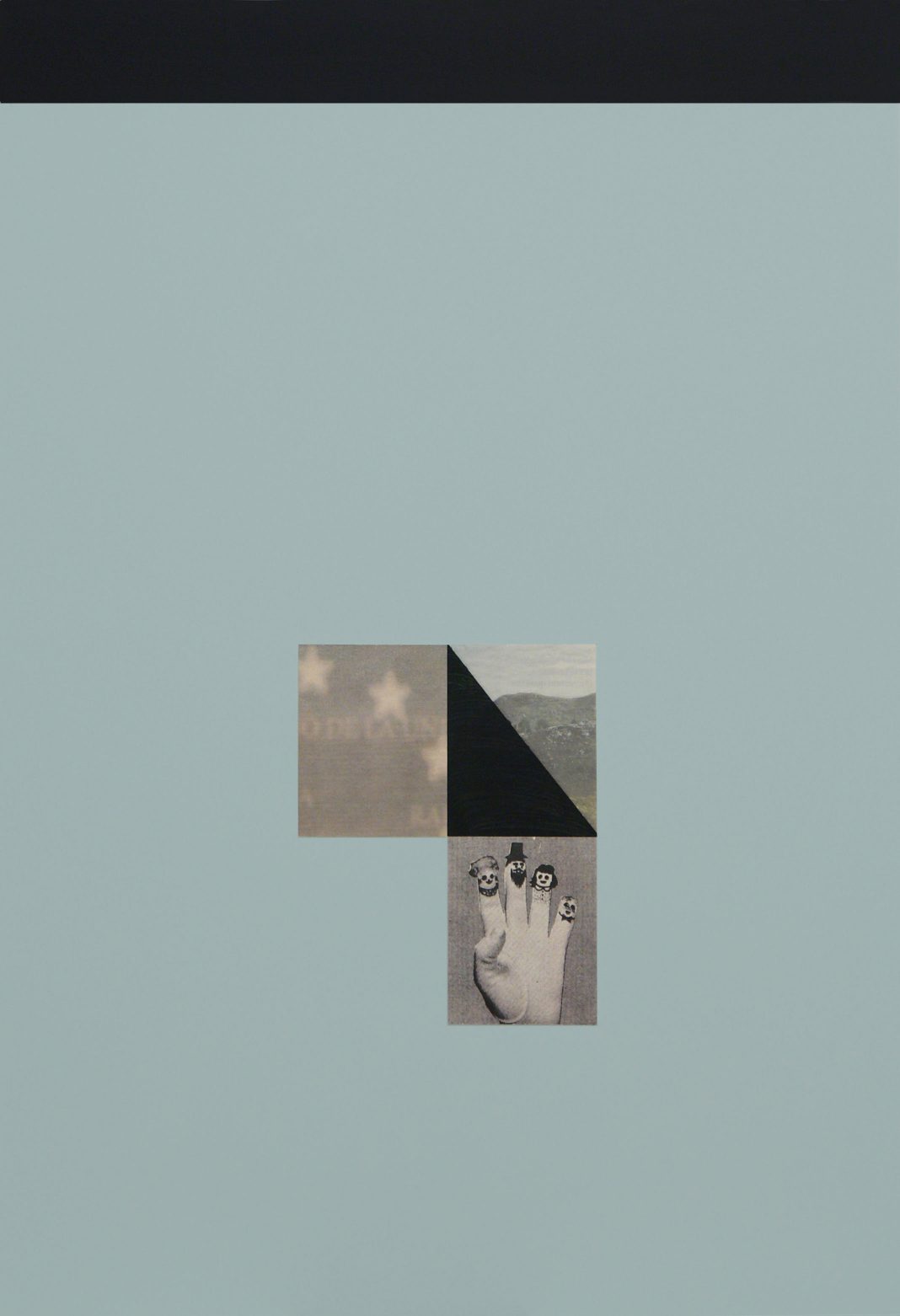 Fine del paesaggio raccoglie lavori eseguiti tra il 2015 e il 2016, in cui il collage di illustrazioni ritagliate da libri, giornali, réclame, si innesta su ampie carte dipinte. Le forme sono talvolta palesi, altre volte quasi nascoste dalla pittura che, in questo modo, agisce come un filtro, le trasforma, in maniera talvolta sorprendente, ironica, ludica.