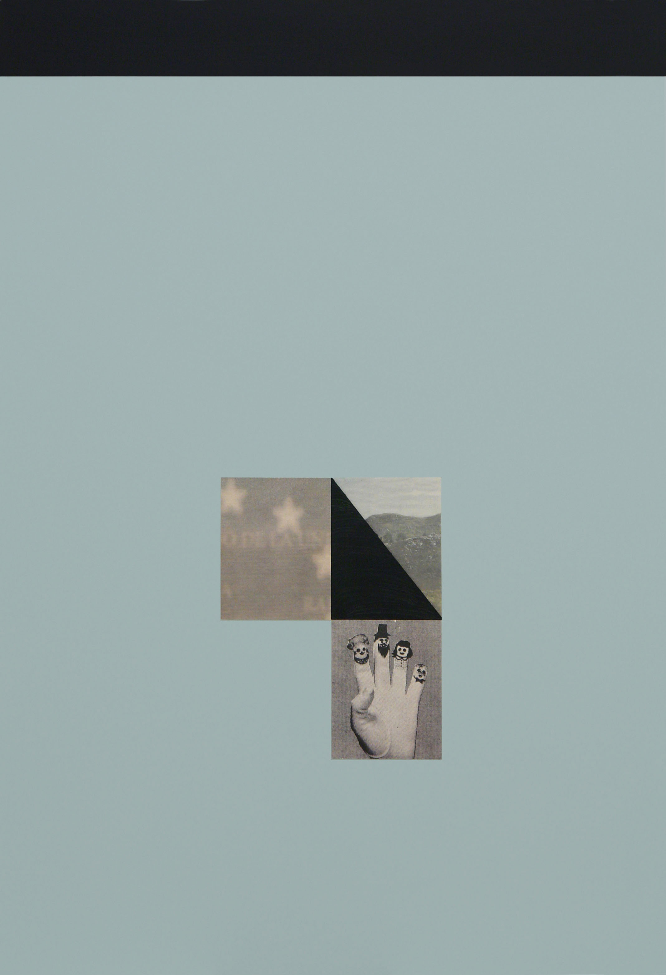 Sono lavori del 2015/16, in cui il collage di illustrazioni ritagliate da libri, giornali, réclame, si innesta su ampie carte dipinte. Le forme sono talvolta palesi, altre volte quasi nascoste dalla pittura che agisce come un filtro, le trasforma, in maniera talvolta sorprendente, ironica, ludica.