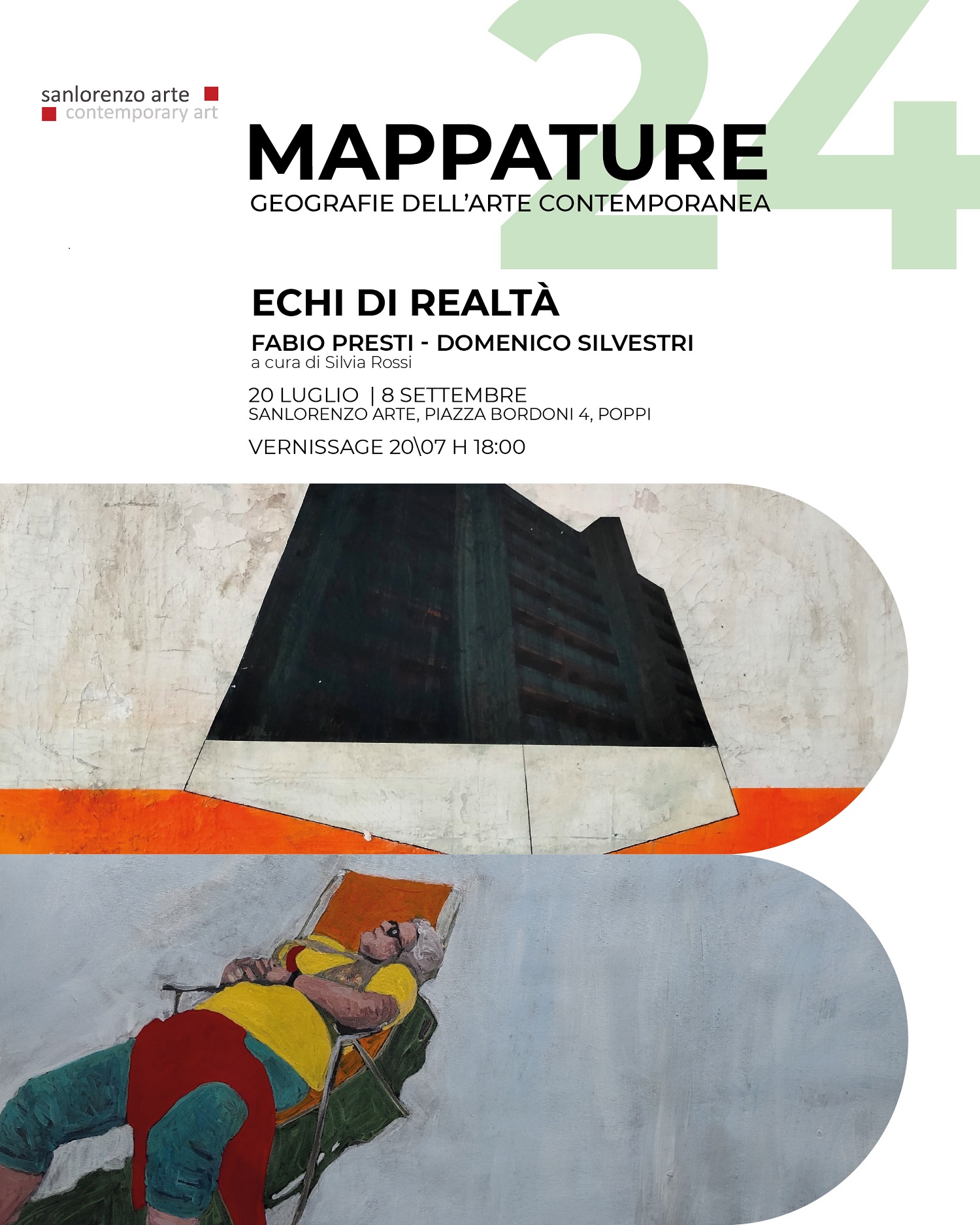 “Silvestri e Presti offrono una visione unica e complementare della realtà – sottolinea Silvia Rossi. – Le loro opere, insieme, creano un dialogo potente e suggestivo, dove le figure umane e le architetture si incontrano e si completano, raccontando storie di umanità e resistenza. La mostra invita il visitatore a esplorare questi "echi" visivi e a lasciarsi trasportare in un viaggio tra il reale e il sognato, tra il vissuto e l'immaginato”.