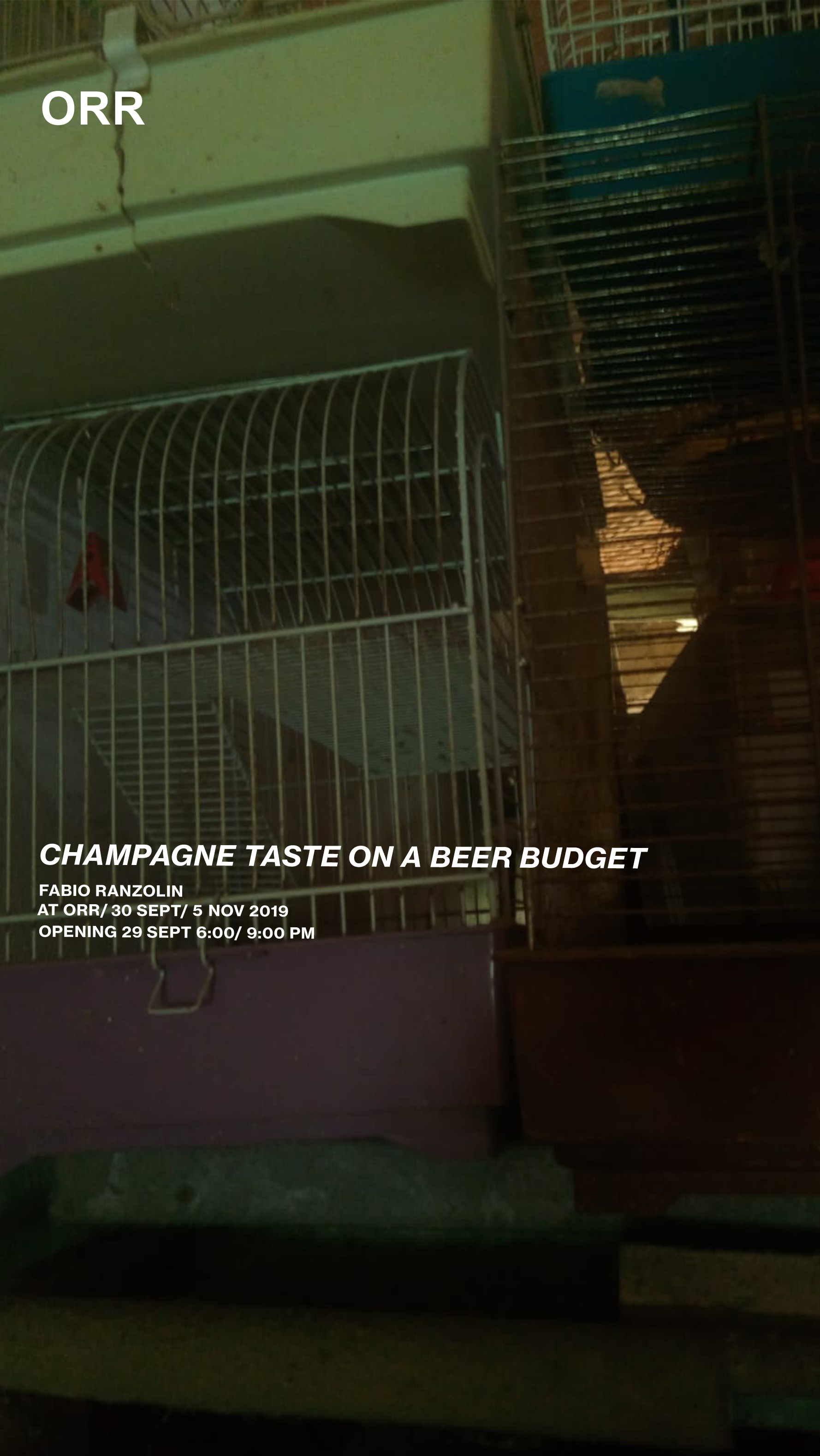 Spazio ORR apre con la mostra personale Champagne taste on a beer budget di Fabio Ranzolin (1993), che inaugura il 29 Settembre e si conclude il 5 Novembre.