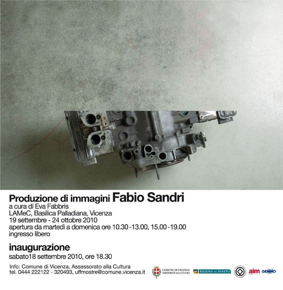 Fabio Sandri è nato a Valdagno (Vicenza) nel 1964 e vive a Brogliano. Si è diplomato all’Accademia di Belle Arti di Venezia; nel 1988 ha tenuto la sua prima mostra personale intitolata Luoghi. Dal 1991 al 1996 ha collaborato alla programmazione del laboratorio “Otttomat” di Montecchio Maggiore (Vicenza); insegna al Liceo Artistico “U. Boccioni” di Valdagno. Ha esposto il suo lavoro in Italia, Slovenia, Cekia e Gran Bretagna, di recente ha partecipato a Fotografia Europea 2009, tenuto mostre presso Exitarte di Vittorio Veneto e la Galleria Artericambi di Verona ed è stato presente in collettive presso l’Istituto di Cultura Italiana a Berlino, il Kurpfalzischmuseum di Heidelberg, la Kettle’s Yard dell’University of Cambridge.