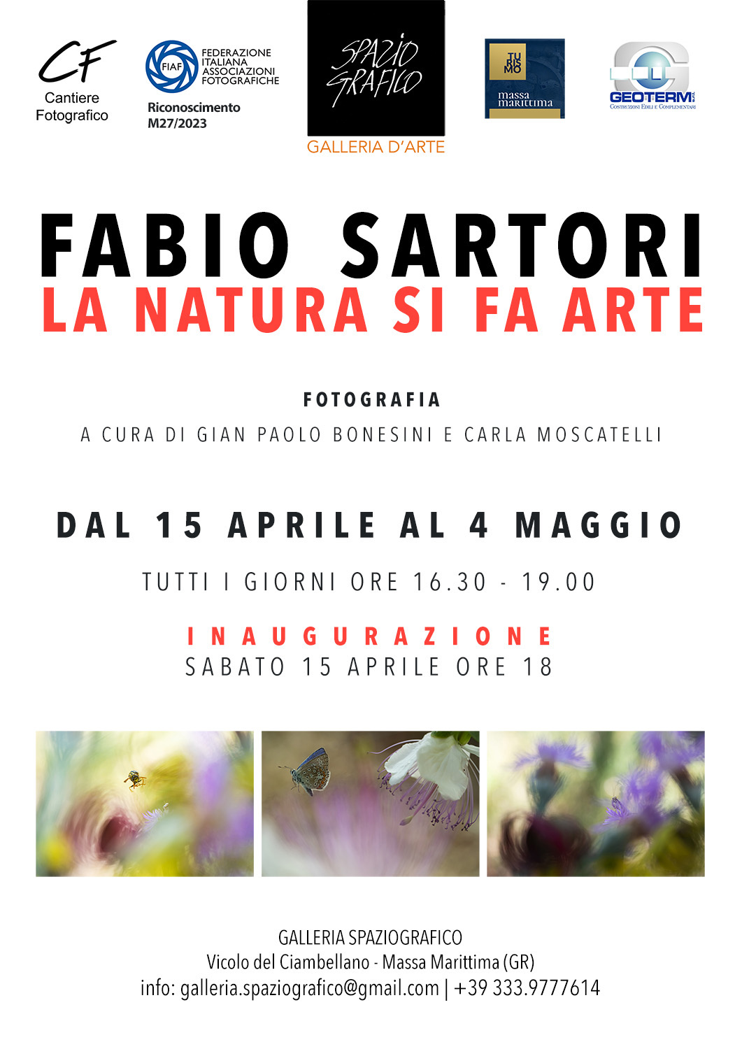 Conosciuto per le sue foto industriali all’interno degli impianti ENEL che gli hanno valso numerosi riconoscimenti, anche internazionali, Sartori ha sviluppato negli anni in parallelo questo specifico linguaggio con tecnica macrografica, dove l’obbiettivo indaga la natura in ogni suo minimo dettaglio, fermando l’attimo in cui si sostanzia la perfezione.