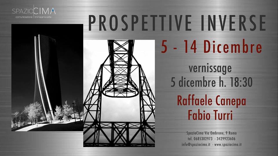 LA MOSTRA - "Prospettive inverse" è il nome della nuova mostra di Galleria SpazioCima, sita in via Ombrone 9, Roma, che inaugurerà mercoledì 5 dicembre, dalle ore 18:30 alle ore 21:30, e proseguirà sino a venerdì 14 dicembre. La mostra, organizzata da Roberta Cima, è a ingresso libero, da lunedì a giovedì dalle 15 alle 19 e il venerdì dalle 10 alle 13. Circa cinquanta le foto in esposizione, di vari formati.