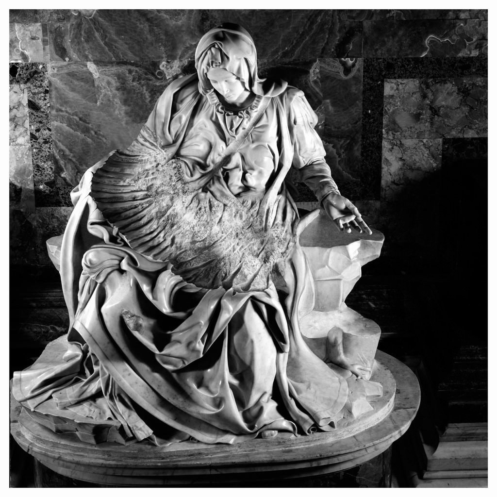 L’artista, posseduto dalla volontà irresistibile di rubare parti eccezionali di opere d’arte, ormai assunte dalla Storia e dal Mito, immagina di aver rubato il corpo del Cristo Morto, posto sulle ginocchia della Vergine della Pietà in San Pietro e poi pene e testicoli al David di Michelangelo.