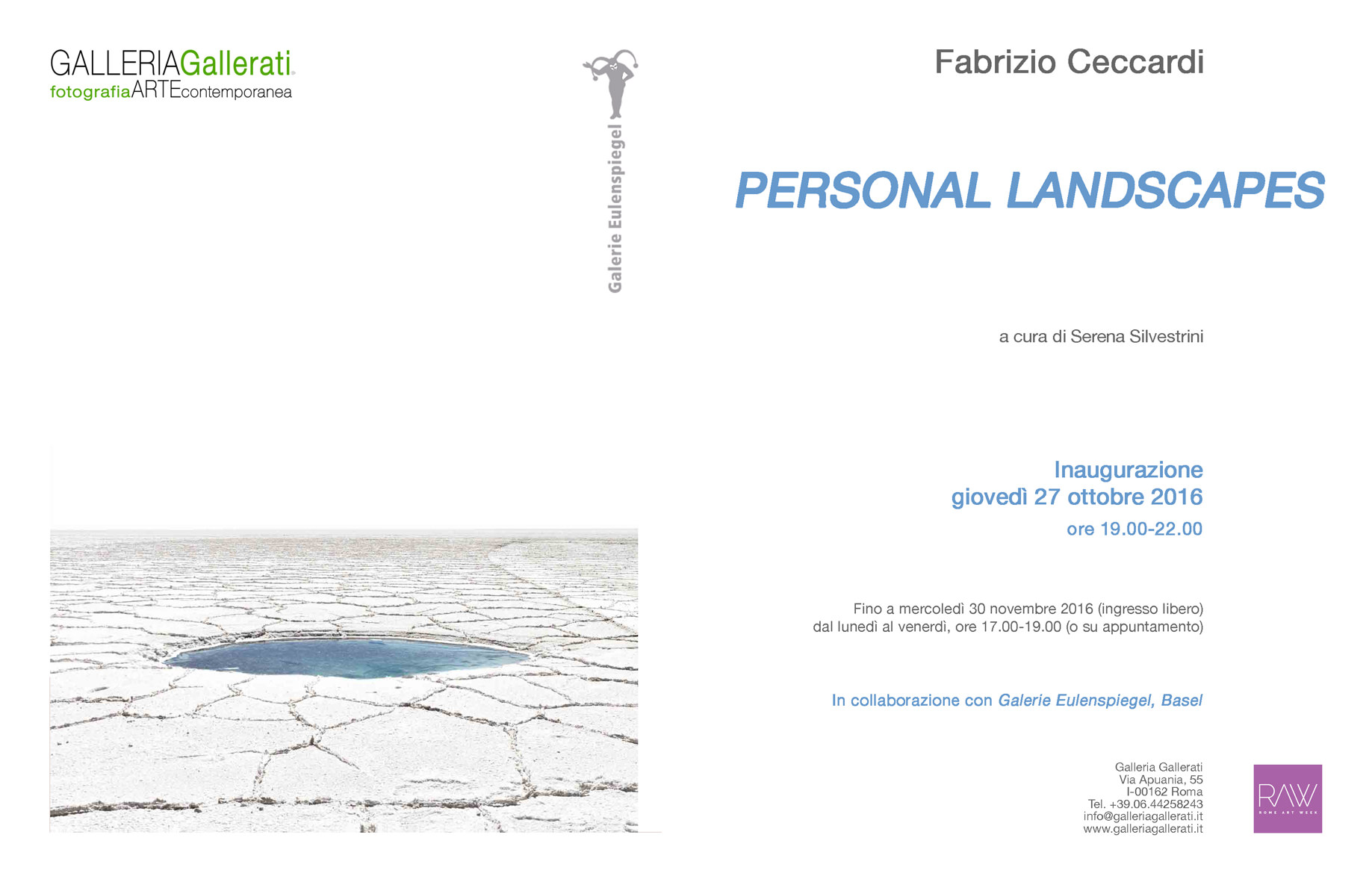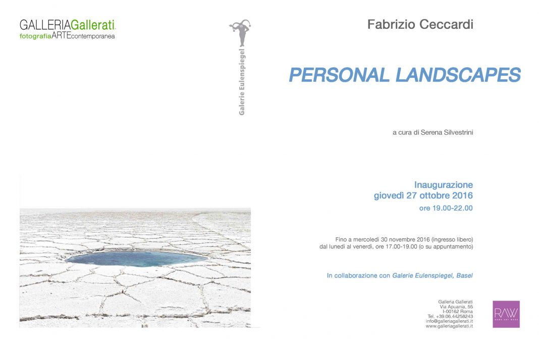 Carlo Gallerati è lieto di presentare Personal Landscapes, una mostra personale di Fabrizio Ceccardi a cura di Serena Silvestrini, evento ideato e realizzato in collaborazione con la Galerie Eulenspiegel di Basilea (CH) e inserito nel programma della prima edizione di Rome Art Week (settimana dell’arte contemporanea a Roma).