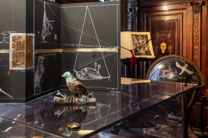 Il fulcro di questo incontro è la Biblioteca storica, autentica Wunderkammer dove - tra le mirabilia e gli strumenti scientifici rinascimentali - il libro d’artista How to Explain to Birds that the Sun Belongs to Everyone si posa sul grande tavolo ligneo quattrocentesco, come reliquia poetica dedicata al volo degli uccelli.