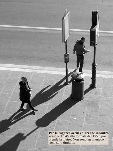 Baudelaire immagina, infatti, un grande amore che non potrà mai realizzarsi perché magari non incontrerà più quella passante, quella bellezza fuggitiva che gli ha sfiorato lo sguardo per un istante. E proprio a quella passante sconosciuta, oggi, si sarebbe potuto rivolgere uno di quei messaggi d'amore che il fotografo ricerca sui free press nazionali.