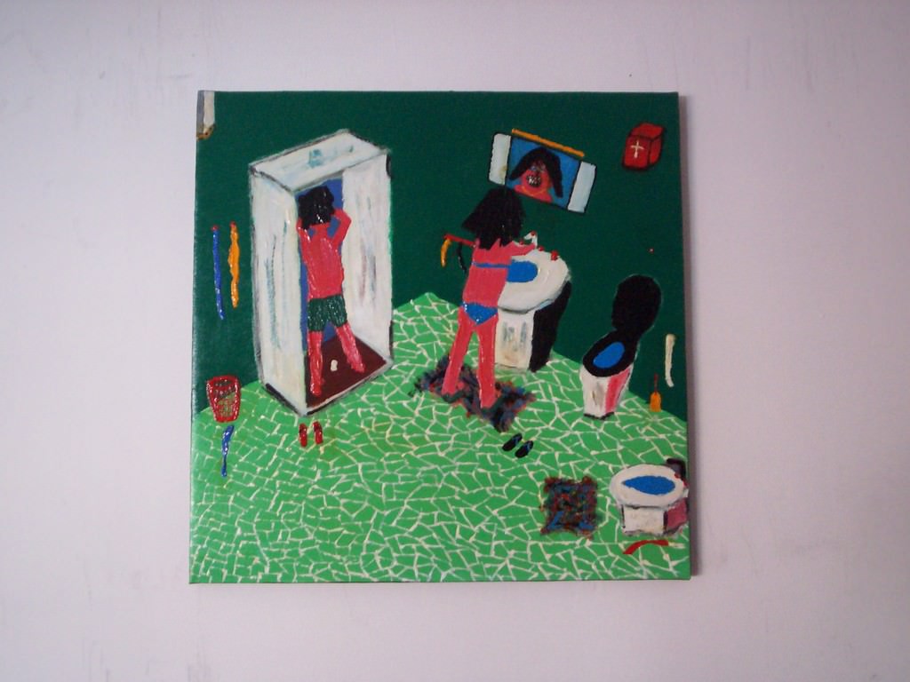 Gli scenari “INTERNI”, descrivono una ludica e ironica percorrenza quotidiana dove figure multicolore rapportano la loro esistenza con gli ambienti nei quali vivono.