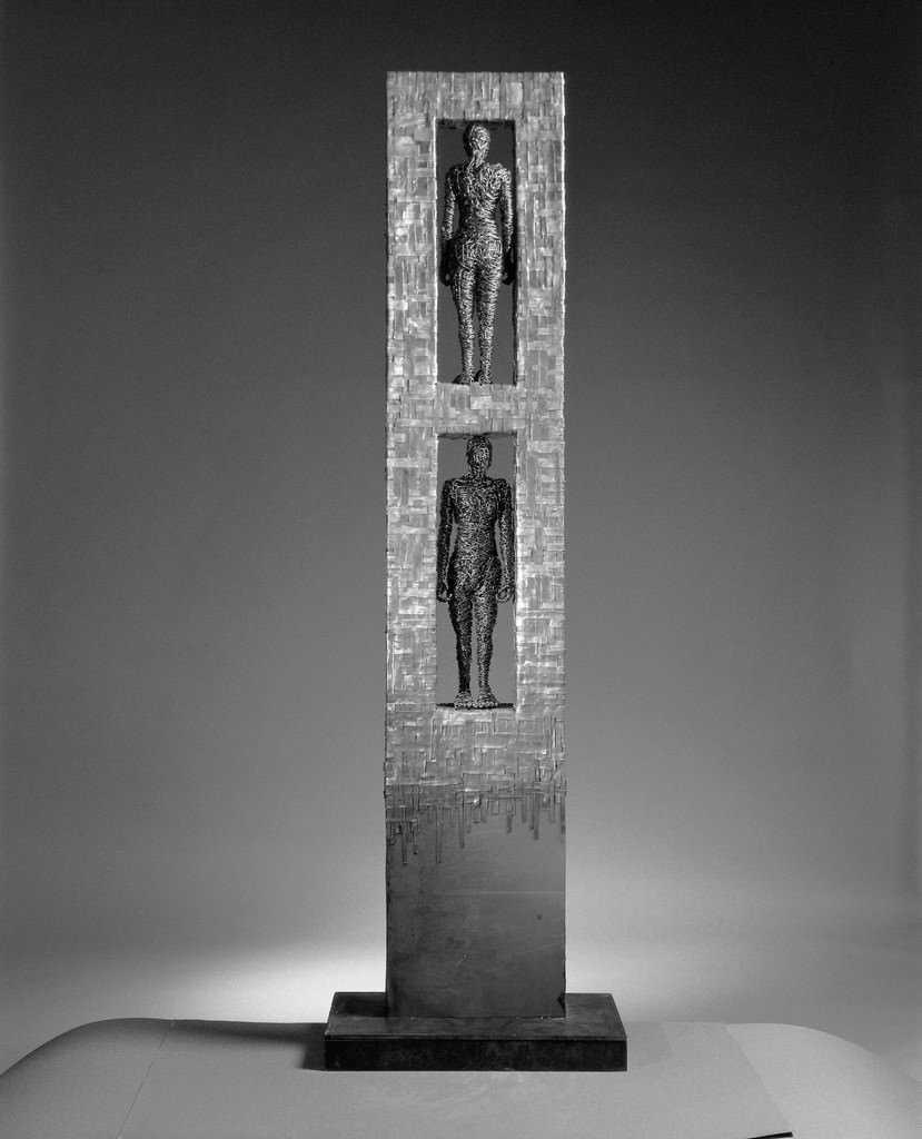 Dagli ultimi anni ’90 realizza sculture di figure umane utilizzando materiali insoliti come il filo di ferro, il filo di rame, placche di piombo, specchi.