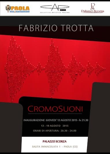 "Cromosuoni", un titolo che richiama fortemente il termine cromosomi, corpi intensamente colorabili, strutture essenziali dell’eredità, intreccio che contiene il nostro patrimonio genetico. Da qui lo scopo di questa mostra: svelare l’attuale “patrimonio” artistico di Fabrizio Trotta, basato su una duplice ricerca: il Colore e il Suono; mondi apparentemente distanti caratterizzati da una matrice comune di energia e frequenza. L’artista identifica una sinergia latente tra l’effetto acustico e l’elemento cromatico, attribuendo però ad ognuna di essa un’indagine e un senso specifico.
