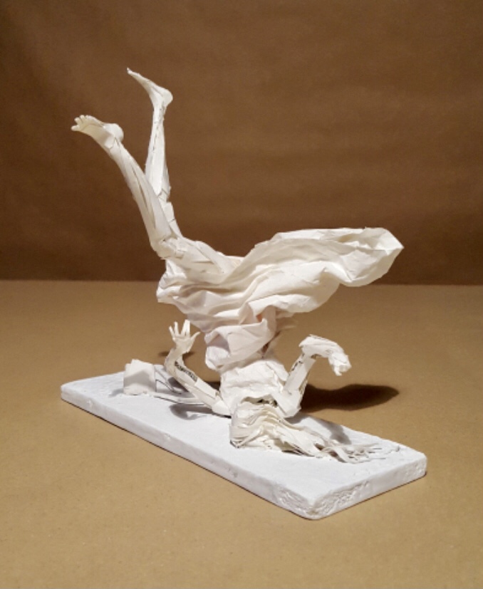 Ivan Markovic desidera evocare sia la caduta che la resurrezione dei suoi soggetti umani. Ci riesce con il supporto cartaceo, che è allo stesso tempo elastico e resistente. L'artista lo modella per suggerire un movimento sia verso il basso che verso l'alto. Creando così una potente metafora sulle avversità e sulla crescita ritenute dall’artista inseparabili.