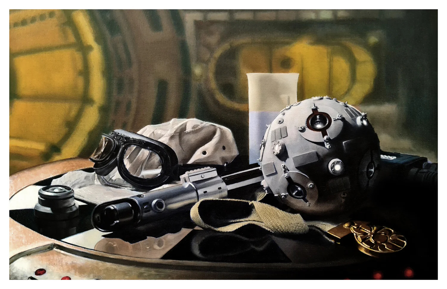 Robin Springett reinventa gli oggetti di culto di film iconici come Indiana Jones, Star Wars e Blade Runner in nature morte che evocano un’eleganza classica, mescolando lo stile rinascimentale con il fascino della fantascienza.