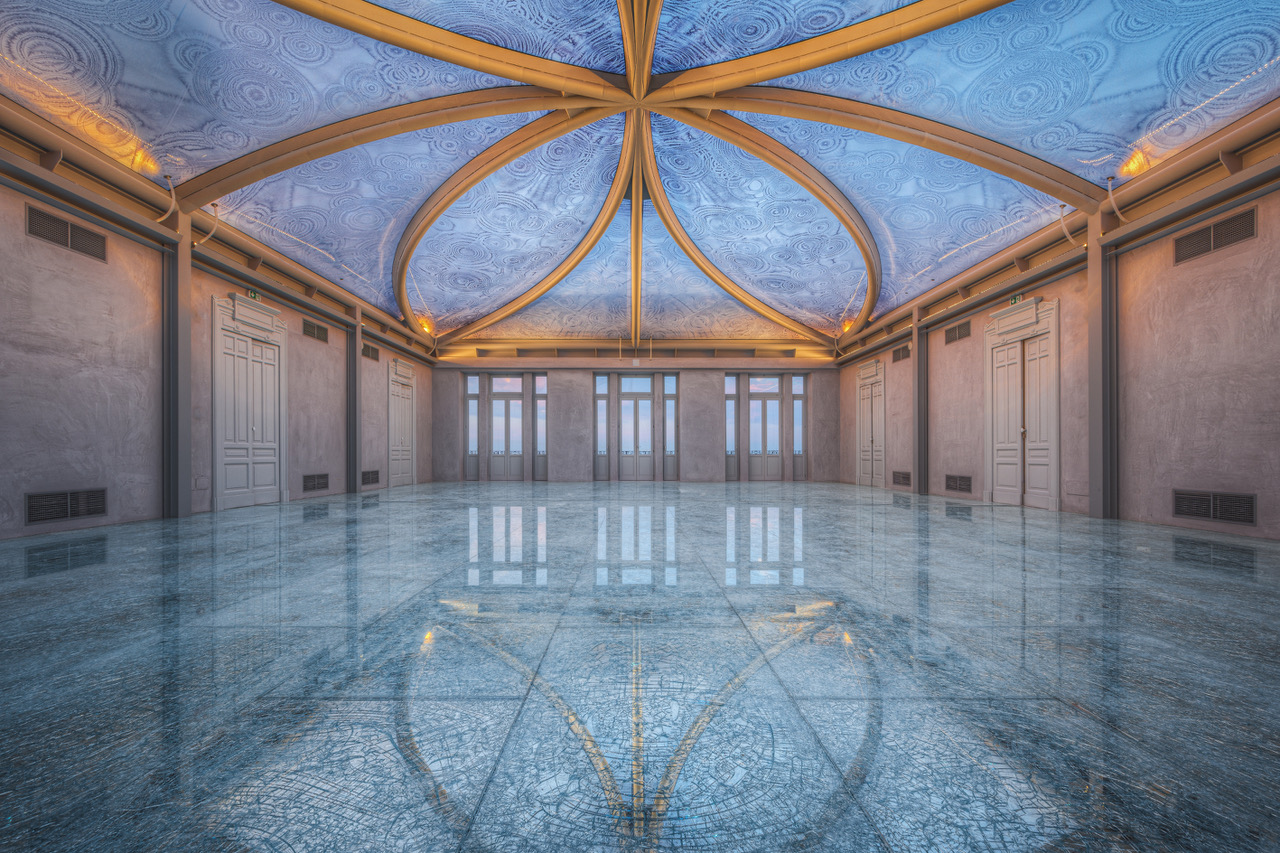 Parlando sempre di luoghi, un focus si pone sulla “Sala Cielo”, un luogo posto all'ultimo piano del Teatro Kursaal di Bari, edificio risalente agli anni '20: un’opera complessa capace di creare relazioni tra il mare, la città e il cielo, di cui sono esposti alcuni acquerelli preparatori e un grande dipinto su carta utilizzato per realizzare i motivi stampati sulle vele di copertura dell'edificio.
