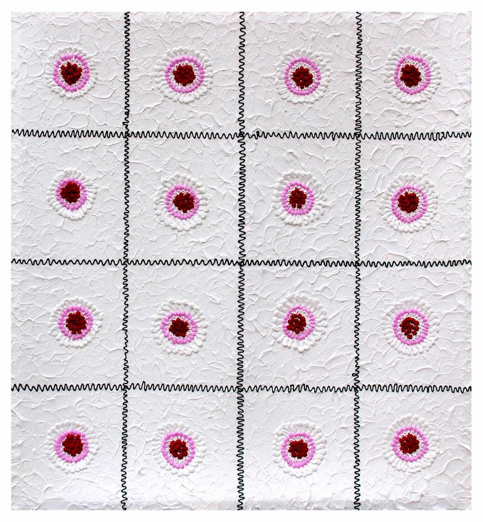 Per la sua seconda personale presso e x t r a s p a z i o l’artista ha scelto il titolo Threshold of Hap, e ha affidato la sua narrazione di un clima culturale e politico sempre più morboso e affettato ad un lavoro più rarefatto, ad un gesto pittorico quasi calligrafico, sebbene sempre irriverente