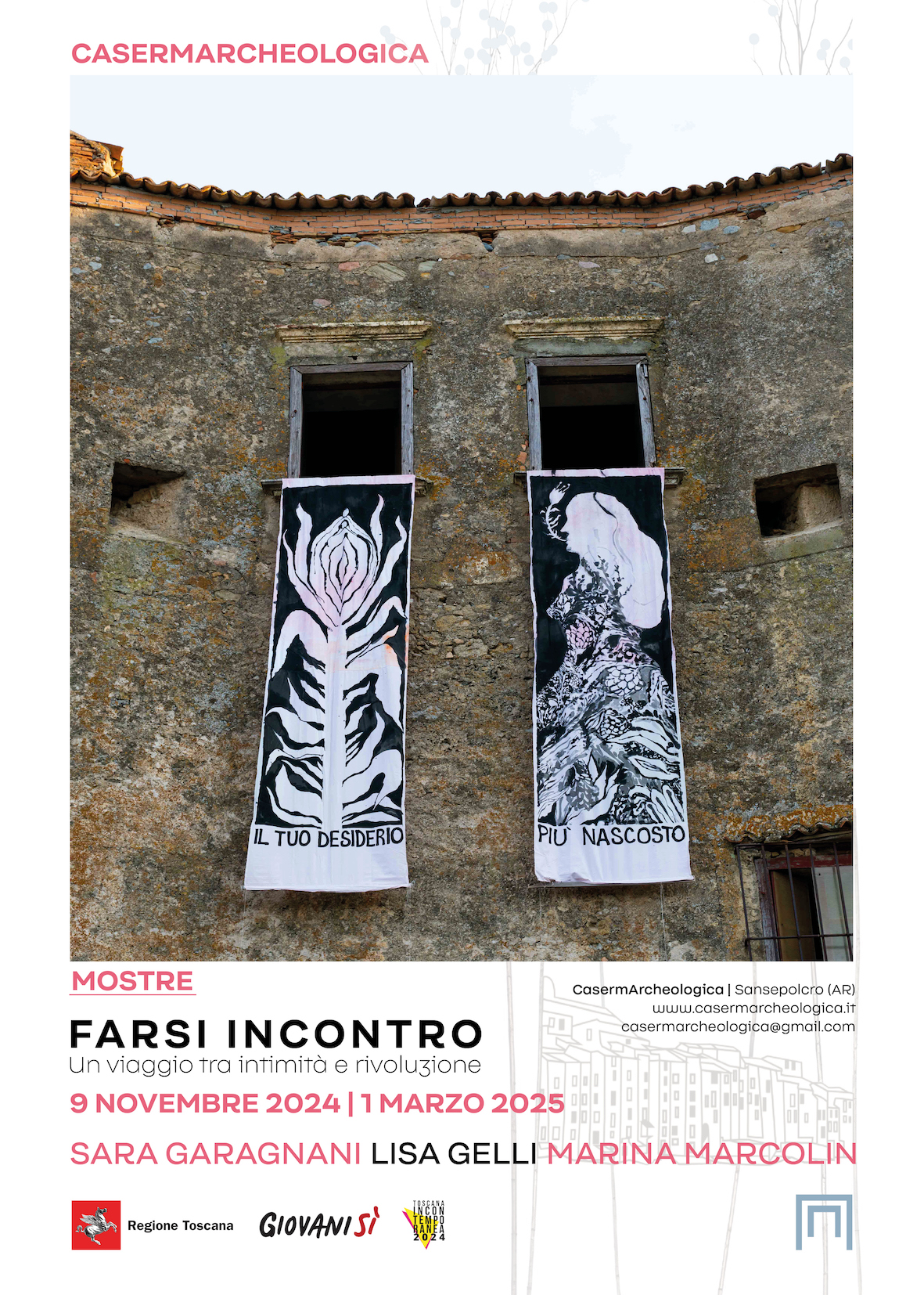 Dal 9 novembre, CasermArcheologica ospita la mostra “Farsi incontro”, che unisce le opere di Sara Garagnani, Lisa Gelli e Marina Marcolin. Le artiste esplorano temi di memoria, identità e autodeterminazione femminile.