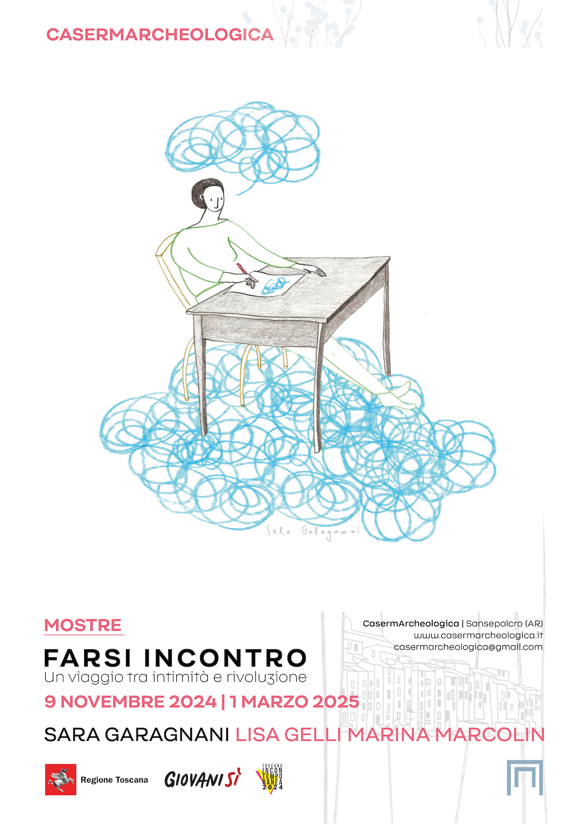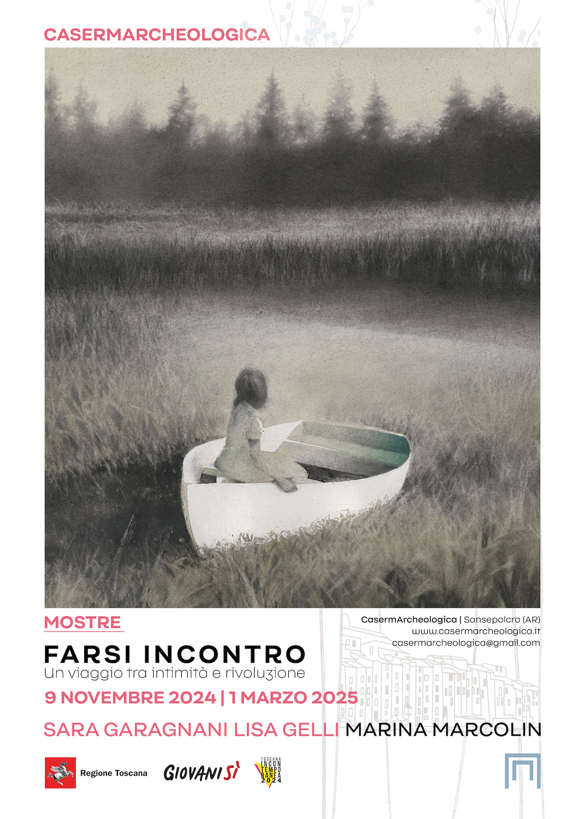 Sabato 9 novembre 2024 alle ore 18:00, CasermArcheologica inaugura la mostra Farsi incontro, tra intimità e rivoluzione, che presenta le opere di Sara Garagnani, Lisa Gelli e Marina Marcolin. Le artiste esplorano stati rivoluzionari attraverso una narrazione intima e personale con le tecniche dell’incisione, della fotografia e dell’illustrazione.