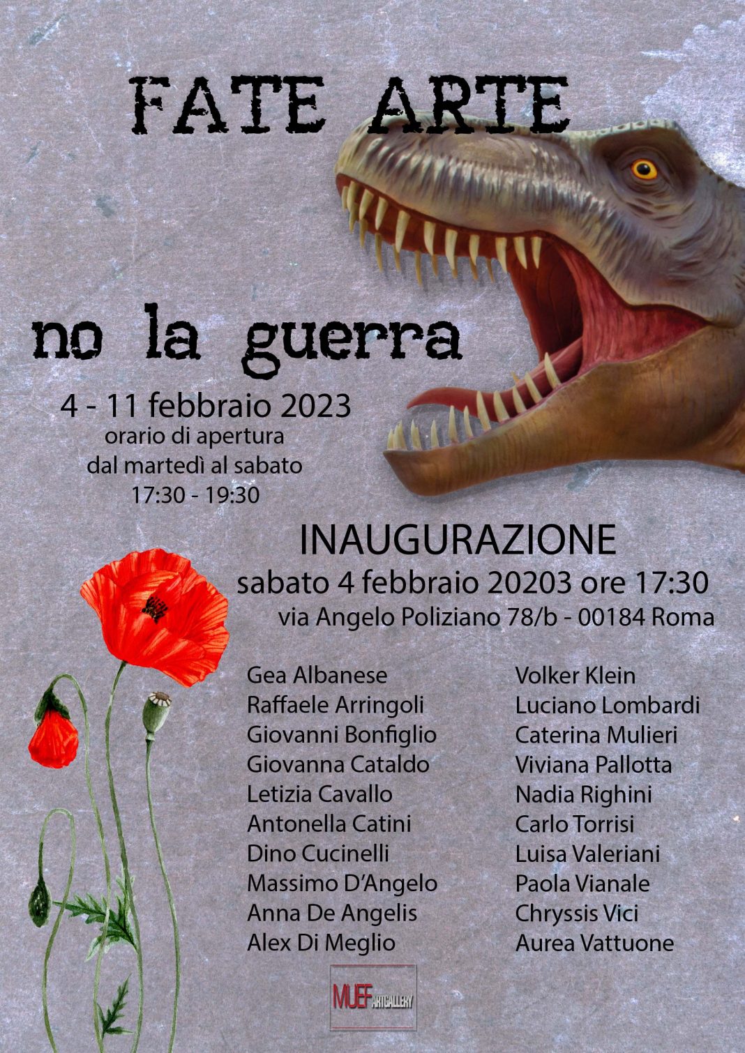 Il Muef ArtGallery è lieto di ospitare la collettiva Fate arte no la guerra, 20 artisti selezionati accuratamente che hanno sentito emotivamente e artisticamente il tema della mostra.