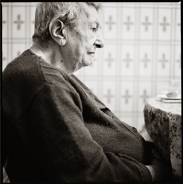L’incontro tra il fotografo-nipote e i soggetti-nonni avviene in un appartamento che è carcere e culla al tempo stesso: un luogo che i nonni hanno “costruito” negli anni attraverso una geografia corporea che corrisponde agli spazi e agli oggetti (salvifici) del loro quotidiano (il letto, le medicine, il girello, le flebo, etc).