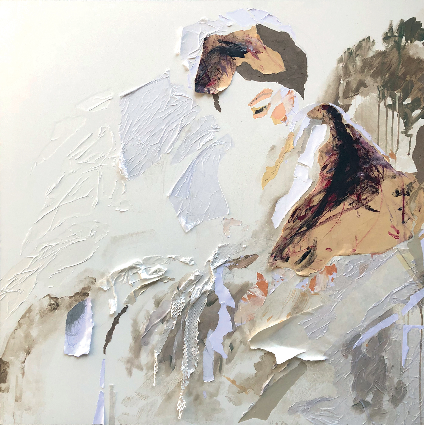 E per finire i collages, strappi col e dal passato, brandelli di opere lontane ma non totalmente sacrificabili, che velano, svelano, rivelano... Lacerti di pelle a risarcire ferite, a mitigare eccessi luminescenti, a sottolineare momenti cruciali. Inclusioni nel recente fare di Federica, dosate col rispetto dovuto al vissuto, ma con lo sguardo rivolto al sarà, col cuore gettato oltre l'ostacolo, oltre la temporalità percepita.