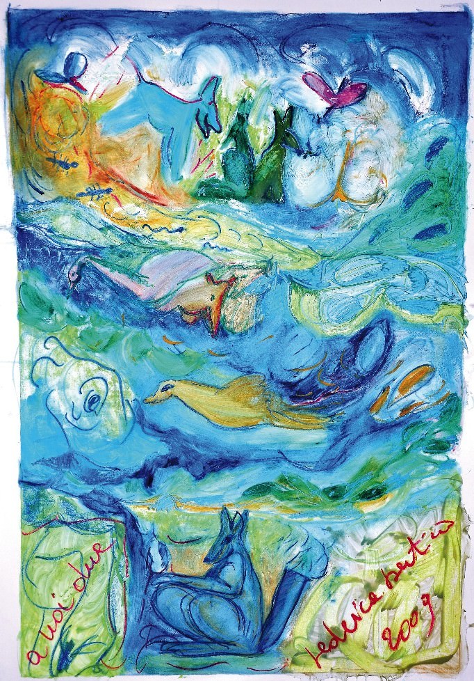 “….Da lontano si ha l’impressione di una raffigurazione astratta, ma man mano che ci si avvicina e si cerca di capire, dall’unità emergono i singoli elementi con le loro caratteristiche e peculiarità ben definite. Federica si sente parte finalmente di questo insieme ed è pronta a confrontarsi con ciò che la circonda. A questo punto, però, proprio adesso, irrompe inaspettata la necessità di dover affrontare un grosso cambiamento. Abbandonare i pastelli ad olio e sostituirli
