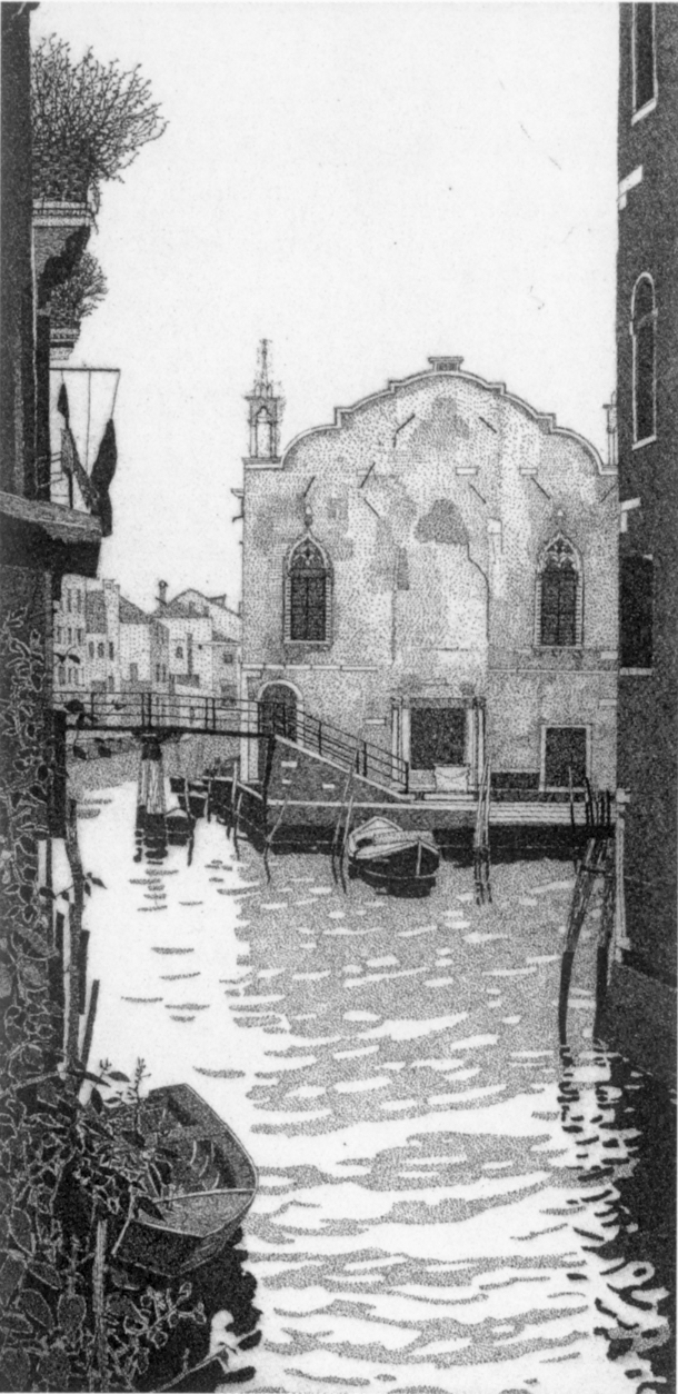 La genesi delle vedute dedicate alla città lagunare è ben descritta dal testo di Mauro Broggi che, come assistente per dieci anni di Renzo Zorzi, ha vissuto all’interno dell’Olivetti l’impegno culturale promosso con lungimiranza dall’azienda di Ivrea. Per conto dell’Olivetti, Federica Galli ha lavorato a trentanove scorci veneziani, accettando la sfida di confrontarsi direttamente con i grandi vedutisti del passato. Le sue acqueforti, impegnative sia per formato che per scelte stilistiche, si distinguono per la capacità di offrire uno sguardo inedito e d’effetto su una delle città più stereotipate e fotografate al mondo. Per l’occasione, nel 1987, la Fondazione Giorgio Cini dell’isola di San Giorgio a Venezia ha organizzato un’importante esposizione, modificando appositamente il proprio statuto per ospitare l’opera di un artista vivente. Ieri come oggi le “Venezie” di Federica Galli stupiscono e meravigliano per qualità e arditezza.