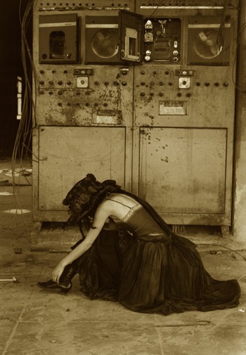 L'aria si sposta leggermente come al passaggio di qualcuno e un'ombra, sfuggente, appare e scompare dall'angolo di una costruzione fatiscente. L'occhio non riesce a percepirla con chiarezza ma, nel buio, ne immagina i contorni. Abbandonandosi a istinto e percezione scopre una presenza, apparentemente improbabile, che si muove da un luogo all'altro nelle nere fessure della notte. Spettro dell'inconscio, angelo della notte, una donna avvolta in uno splendido abito dalle inutili sfumature di nero spia i nostri movimenti attirandoci in un gioco metafisico che impaurisce e, nello stesso tempo, affascina. La sua immagine si modifica ai nostri occhi via via che la mettiamo a fuoco. In alcuni momenti sembra dolce e sensuale per indurirsi subito dopo sotto un trucco pesante e tenebroso; sorridente ci attrae per trasformarsi in triste e pensierosa. Anche il vestito cambia di colore ammantandosi di verde o dei colori caldi della notte. Si lascia avvicinare per allontanarsi l'attimo seguente calandoci nel dubbio della visione e dell'immaginazione. Attirati dalla curiosità dell'anima la seguiamo dimenticando ogni pensiero con la speranza che possa condurci nei luoghi sotterranei della conoscenza. Vorremmo raggiungerla, sfiorarla nella certezza della sua esistenza o, se non altro, trasformandoci nell'abile fotografo capace di catturarla e fissarla in un'immagine. Fermarla nel presente per poterne godere nel futuro a conferma di aver incontro una guida notturna capace di accompagnarci sul percorso della vita che, alle prime luci dell'alba, impietoso si distende di fronte a noi. Vorremmo conoscerla per capire i motivi della sua esistenza per comprendere anche la nostra, così spesso confusa e inamovibile. Osservandola e inseguendola sprofondiamo nel passato, prede di visioni dimenticate, di comportamenti rimossi con l'illusione di averli cancellati per sempre. Sensazioni che ora ritornano in superficie a riprova che nulla si può veramente dimenticare.