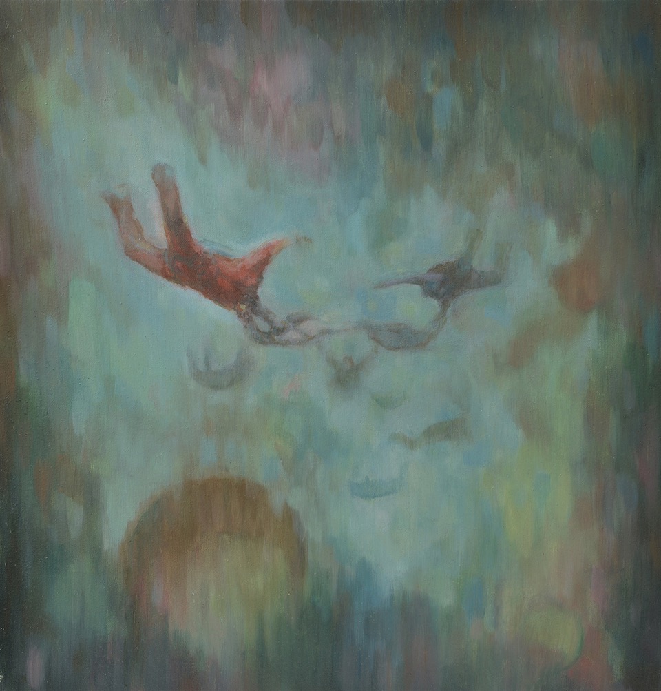 Circa quaranta opere, anche di grande formato, che portano in mostra la produzione recente delle rispettive artiste siciliane, Federica Gisana di Modica e Rossana Taormina di Palermo. Tele a olio, pastelli e disegni per la giovanissima Federica Gisana, alla sua prima personale, in cui la precedente ricerca fiabesca delle ‘giostre’, ha di recente lasciato il posto a soggetti di paracadutisti in volo, immersi in un’atmosfera di colori, linee d’aria e pitture intense, a volte protagoniste più dei soggetti.