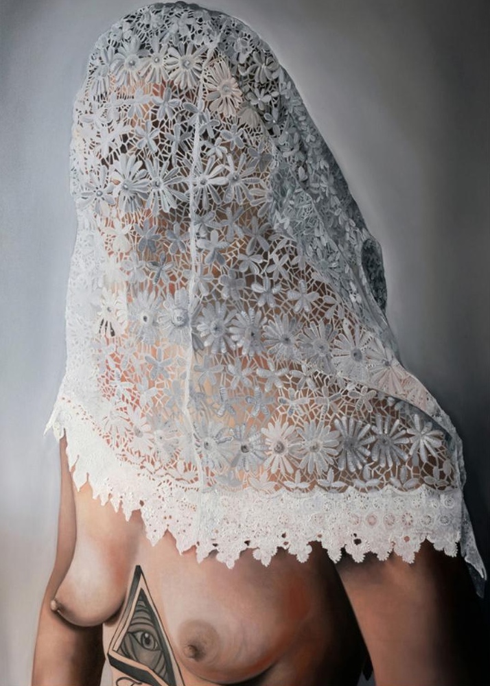 Al centro dei suoi Antiritratti, come lei stessa li definisce, la figura femminile, il suo corpo, la sua intimità e identità, ma anche il suo desiderio di fuggire e di nascondersi dagli altri, dalle paure, dalle ansie soffocanti, alla ricerca costante di sé e di un posto nella società. Il volto è nascosto sotto un tappeto, sotto lenzuola e pizzi minuziosamente ricamati, i tessuti diventano quasi maschere, barriere di sicurezza nei confronti del mondo esterno che non svelano e proteggono le emozioni e nello stesso tempo impediscono il contatto con l’esterno.