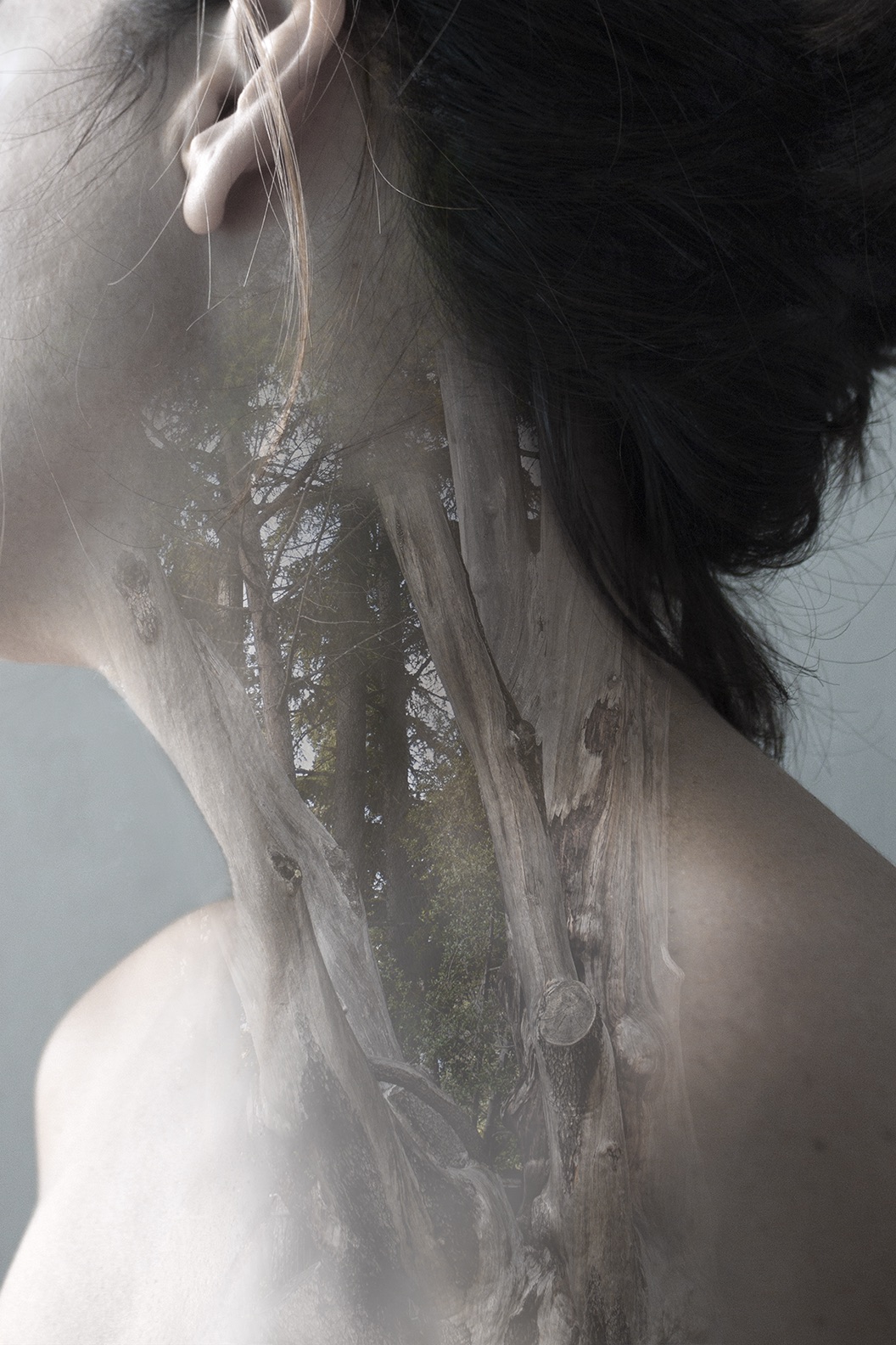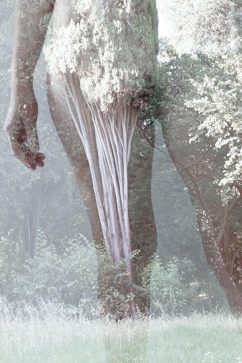 Nelle sovrapposizioni fotografiche di Federica Rugnone, l’uomo è abitato ed abitante, risultante indefinibile di un processo metamorfico, interattivo, che coinvolge una coralità di elementi e che vive di scambi e trasformazioni di materia. In questo processo di ibridazione, natura e corpo si fondono e si confondono e l'epidermide non è più confine che divide ma trama che accoglie, lasciando trasparire la vita del cosmo.