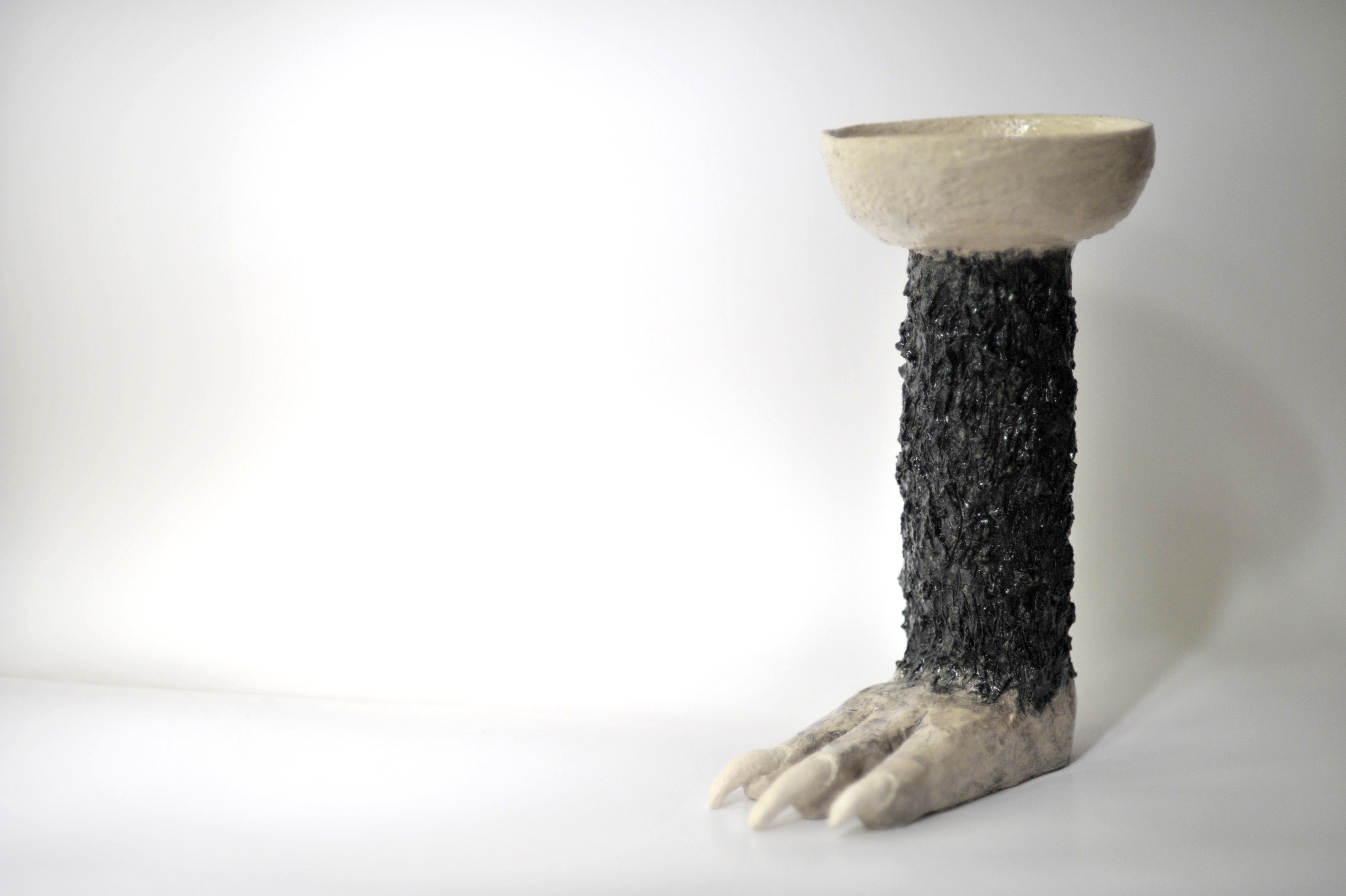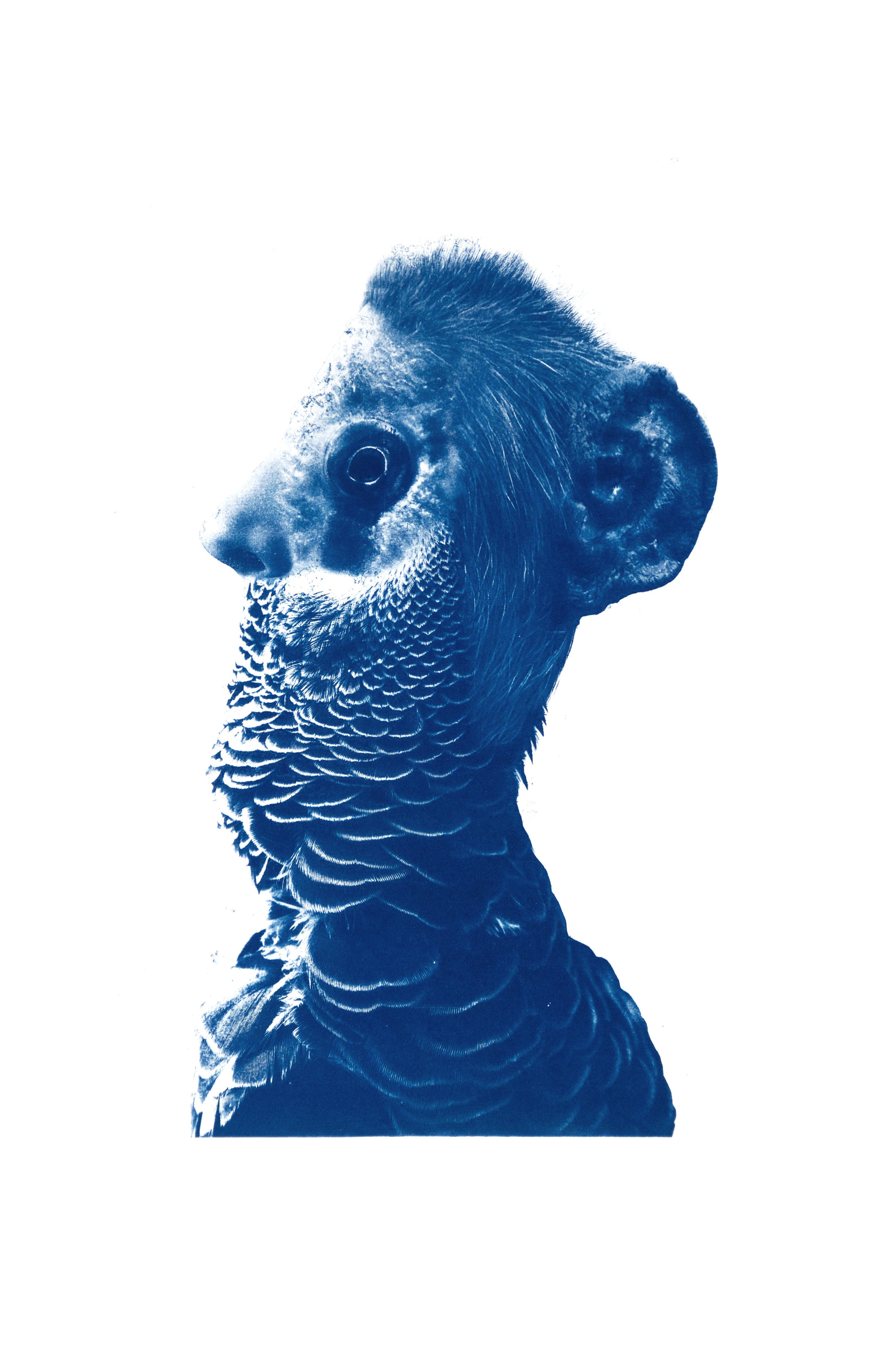 La mostra indaga un’idea antica di sacro che decostruisce i moderni dualismi di puro e impuro, divino e demoniaco, sublime e terribile, suggerendo una dimensione relazionale e ibridativa tra umano e non umano. Esposti collage fotografici stampati in cianotipia che ritraggono esseri “teriomorfi”, assemblaggi mostruosi di specie animali, vegetali e fungine la cui identità non è specificata. Come si legge nel testo critico “Il teriomorfo rappresenta il sacro per eccellenza, ciò che eccede e si differenzia dalla norma, la creatura meticcia che non possiamo addomesticare e che attraverso l’adozione di un ribaltamento epistemico del concetto stesso di mostruosità, non è più inteso in un’accezione negativa ma si fa portatore di valori asseverativi di molteplicità e arricchimento”. Questi esseri chimerici, a tratti grotteschi, ci rimandano a una dimensione pre-cosciente e istintuale che è insita in ognuno di noi; un ritorno alle origini volto a riscoprire quel senso di prossimità e vicinanza con l’alterità tale da riuscire a riconoscersi con e in essa. In mostra anche sculture in ceramica, tra le quali coppe totemiche (simulacri di divinità immaginarie in cui si formalizza l’indifferenza tra natura e cultura) e opere in papier mâché create con carta, colla e stucco (che esplorano spazi metamorfici dove il vuoto diventa traccia della coesistenza di forme e nature diverse). Spiega l’artista: “Oggi abbiamo perso la dimensione del sacro, soprattutto in Occidente. Possiamo recuperare qua e là dei frammenti di questo pensiero che un tempo ci permetteva di guardare al mondo che ci circonda non meramente da un punto di vista utilitaristico e produttivo. L’empatia credo sia l’ultimo baluardo a cui possiamo appellarci proprio per proiettarci nei panni dell'altro, chiunque esso sia”.