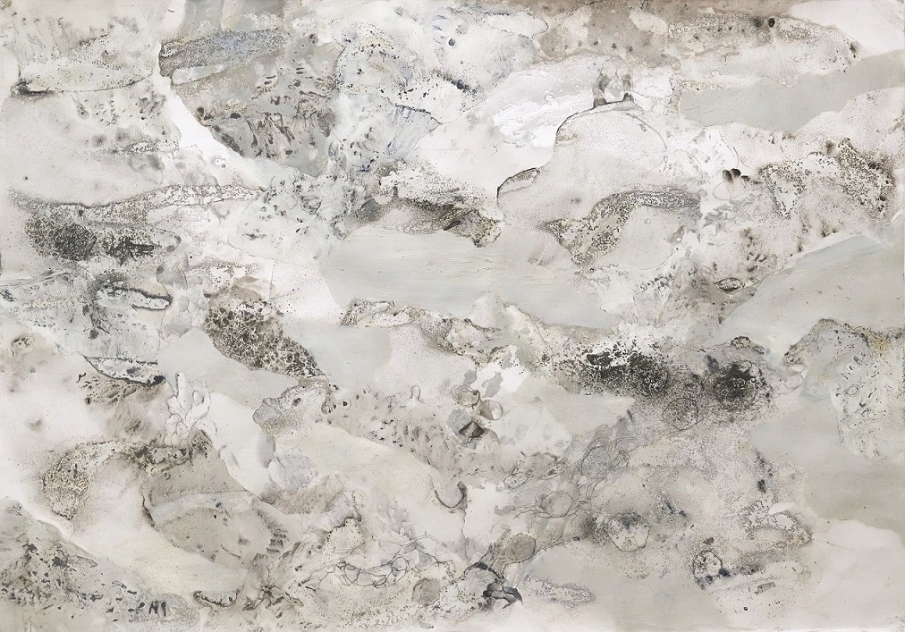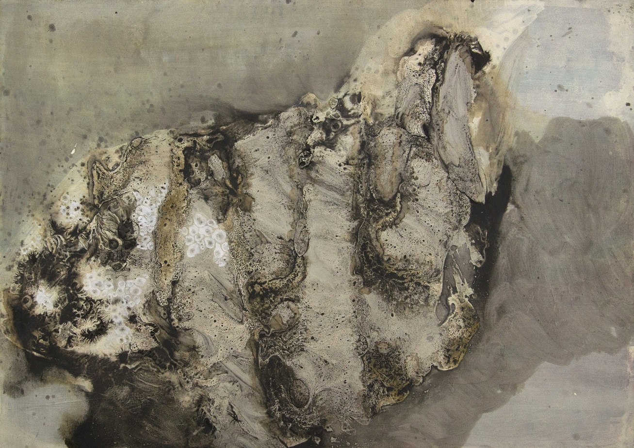 Nell'opera recentissima di Federica Zanlucchi trovano spazio mille mondi sotterranei o abbarbicati o sommersi, dimora a miceli e a licheni e a balani, apparecchiati su scenari che inquadrano prospettive sterminate: si manifestano le intelligenze vegetali, le strategie di ogni fungo, le migrazioni di stormi, di banchi, di sciami. Il paesaggio appare frantumato in scaglie, ciottoli e carapaci assemblati dal tempo, convenuti da diversi ecosistemi, laddove ogni pietra è gremita di memorie, come un diario remotissimo e incompiuto. I sedimenti calcarei, impronta minerale di organismi vitali, come le nubi si ridisegnano attraverso ogni sguardo, che ne rigenera il senso animandoli con nuove emozioni, ricordi, esperienze. L’ambiente che respiriamo si rappresenta elaborando le sue tracce nella memoria, attraversando i tempi e i luoghi, senza gerarchie stabili o scale di grandezza: gli strati porosi della pietra o la trasparenza vitrea delle rocce bagnate da una livida luce pluviale, le valve striate delle conchiglie, l’habitat sottomarino e alfine il fertile, popoloso, terreno dei sottoboschi.