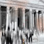 La mostra in galleria presenta, anche, alcune opere dove lo spazio architettonico è quello di Roma, la città che ha visto stratificare la sua identità, le sequenze del suo essere, l’intreccio tra umanità e storia, secolo dopo secolo, il tutto racchiuso in una catena dalla potenza spaziale infinita, monumentale, dove le figure in movimento vivono in connessione tra passato e presente e si appropriano con la loro presenza fisica ed esperienziale di questa realtà che è un continuum temporale, che non si spezza mai. È un dialogo visivo tra la dinamicità contemporanea e l’architettura circostante che osserva l’alternarsi delle generazioni.